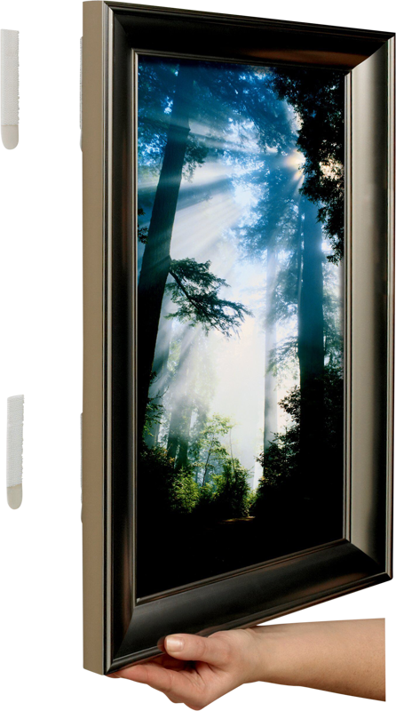 Kabantys juostelės naudoja velcro tarp rėmo ir sienos, kad kabėjimas būtų kuo lengvesnis ir švelnesnis. Montavimui žiūrėkite instrukcijos vaizdo įrašą žemiau.
