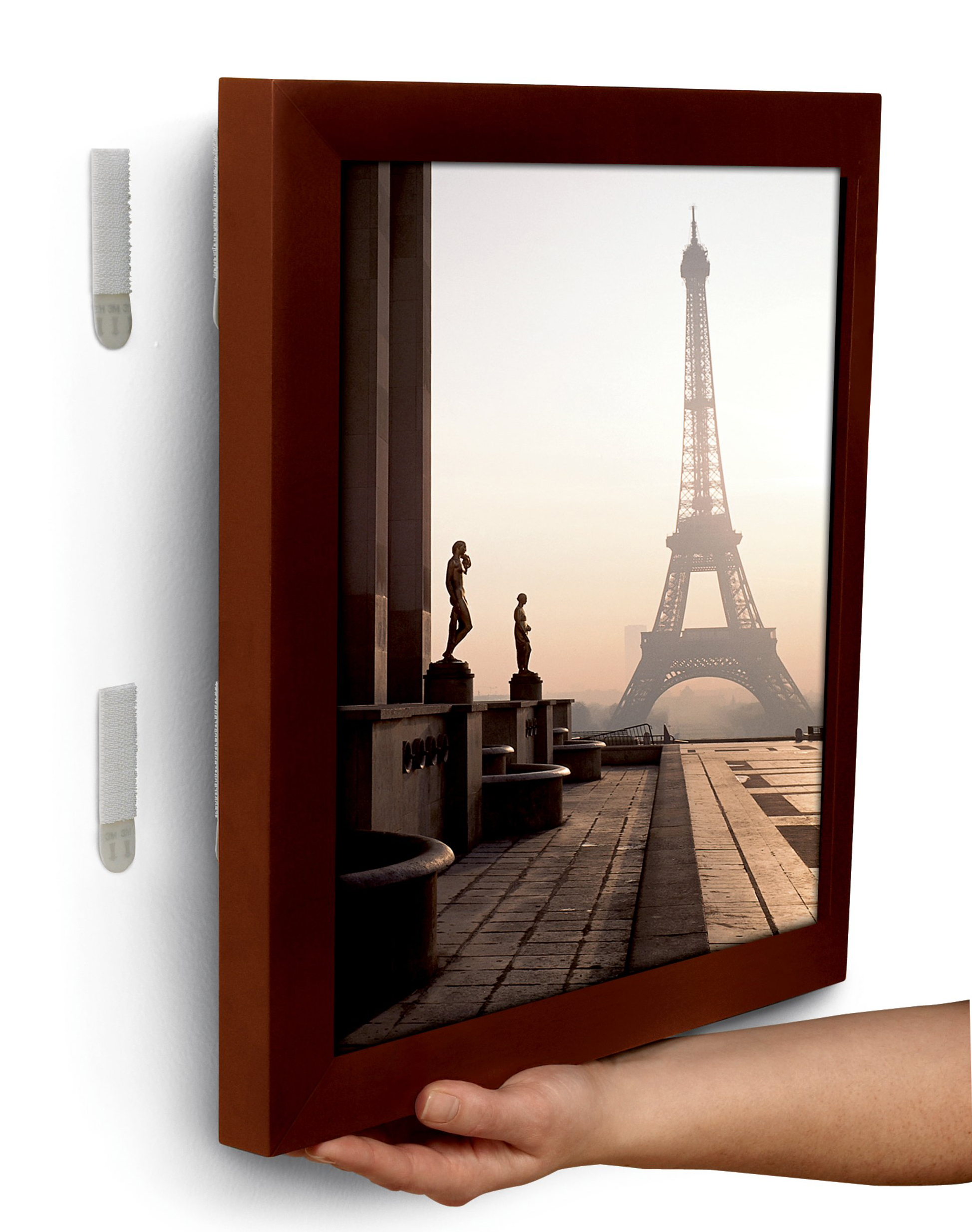 Pakabinimo juostos naudoja velcro tarp rėmo ir sienos, kad kabinimas būtų kuo paprastesnis ir švelniausias. Dėl montavimo žiūrėkite instrukcijų video žemiau.