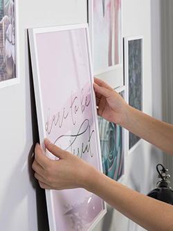 Rėmelių pasirinkimas padeda nustatyti paveikslų sienos toną. Dažnai pasirenkama rėmelius, kurie yra vienos ar dviejų spalvų, kad visos sienos paveikslai natūraliai susilietų. Jei siekiate dramatiškesnio efekto, galite drąsiai daryti priešingai ir maišyti bei derinti rėmelius visiškai skirtingų spalvų, formų ir dizaino.