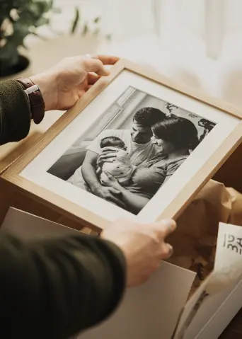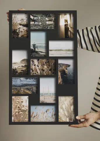 Tada kalbama apie medžiagą... Mūsų asortimente rasite paveikslo rėmus iš įvairių medžiagų. Jei norite lengvesnio rėmo, galime rekomenduoti mūsų kompozicinius arba aliumininius rėmus. Šie gali būti ypač tinkami didesnėms nuotraukoms, kai nenorite per daug apkrauti sienos. Norint sukurti šiek tiek prabangos ir spindesio pojūtį, galbūt aliumininis paveikslo rėmas yra tinkamesnis? Arba kodėl gi ne puošnų medinį paveikslo rėmą? Jei norite įrėminti motyvą, bet norite, kad jis kalbėtų pats už save, mes taip pat turime paveikslo rėmus be jokio rėmelio – tada paprasčiausiai prisegsite savo motyvą tarp nugaros ir stiklo plokštuminės dalies. Paprasta ir elegantiška.