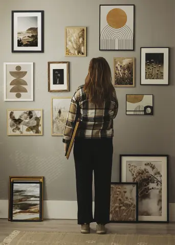 Norite, kad paveikslo rėmas kabėtų ant sienos, ar būtų pastatytas ant baldo? Ar jame turi būti siauri ar platūs kraštai? Ar ieškote paveikslų rėmelių, kurie išsiskirtų arba susilietų interjere?