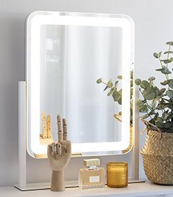 Galbūt tai bus dekoratyvinis stalo veidrodis arba veidrodis su integruotu LED apšvietimu? Turime platų įvairių makiažo veidrodžių asortimentą, atitinkantį jūsų stilių ir tai, ko ieškote!