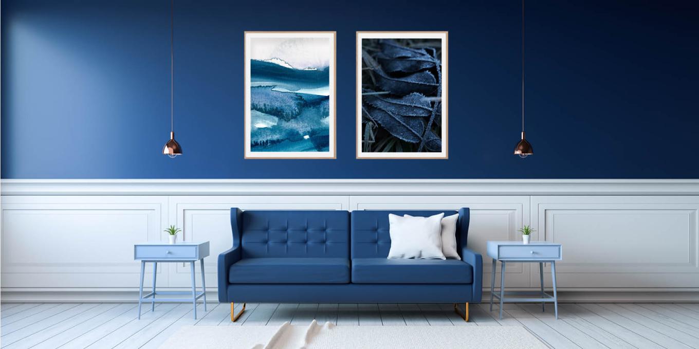 Perimkite mėlyną spalvą savo sienų mene. Maišykite motyvus, stilius ir atspalvius, kad gautumėte gyvą rezultatą. Su paspartu arba be jo. Pasirinkimas priklauso nuo jūsų.