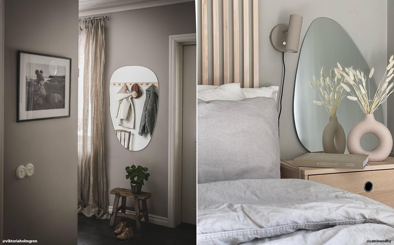 Veidrodis prieškambaryje yra beveik būtinybė namuose. Tiek tam, kad galėtumėte paskutinį kartą pažvelgti į save prieš išeidami, tiek tam, kad sukurtumėte stilingą įėjimą, kuris yra pirmas dalykas, kurį pamatysite jūs ir jūsų svečiai. Asimetrinis veidrodis prieškambaryje iš karto sukuria madingą įspūdį. Šis ovalus veidrodis suteikia tiek funkcionalumo, tiek stilingą švedišką dizainą kambariui.