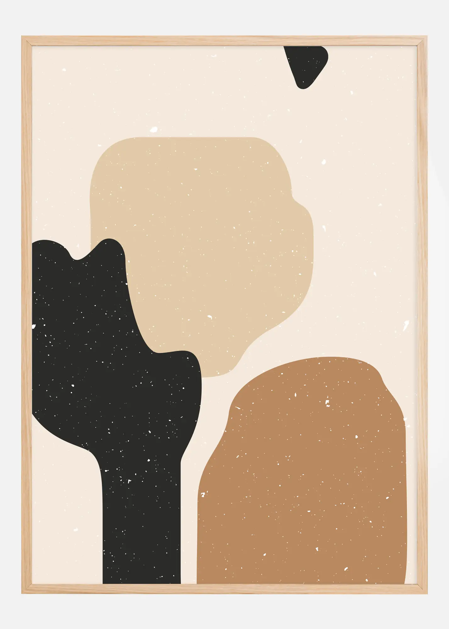 Šis abstraktus plakatas, su savo elegantiškomis organinėmis formomis ir šilta, žemiška spalvų paletė, suteikia ramų ir modernų elementą kiekviename kambaryje. Motyvas, besiskiriantis juodais ir smėliniais atspalviais su terakotos akcentais, yra tiek pat paslaptingas, kiek ir kviečiantis, skatinantis stebėtoją interpretuoti savo prasmę paprastose, bet galingose formose.