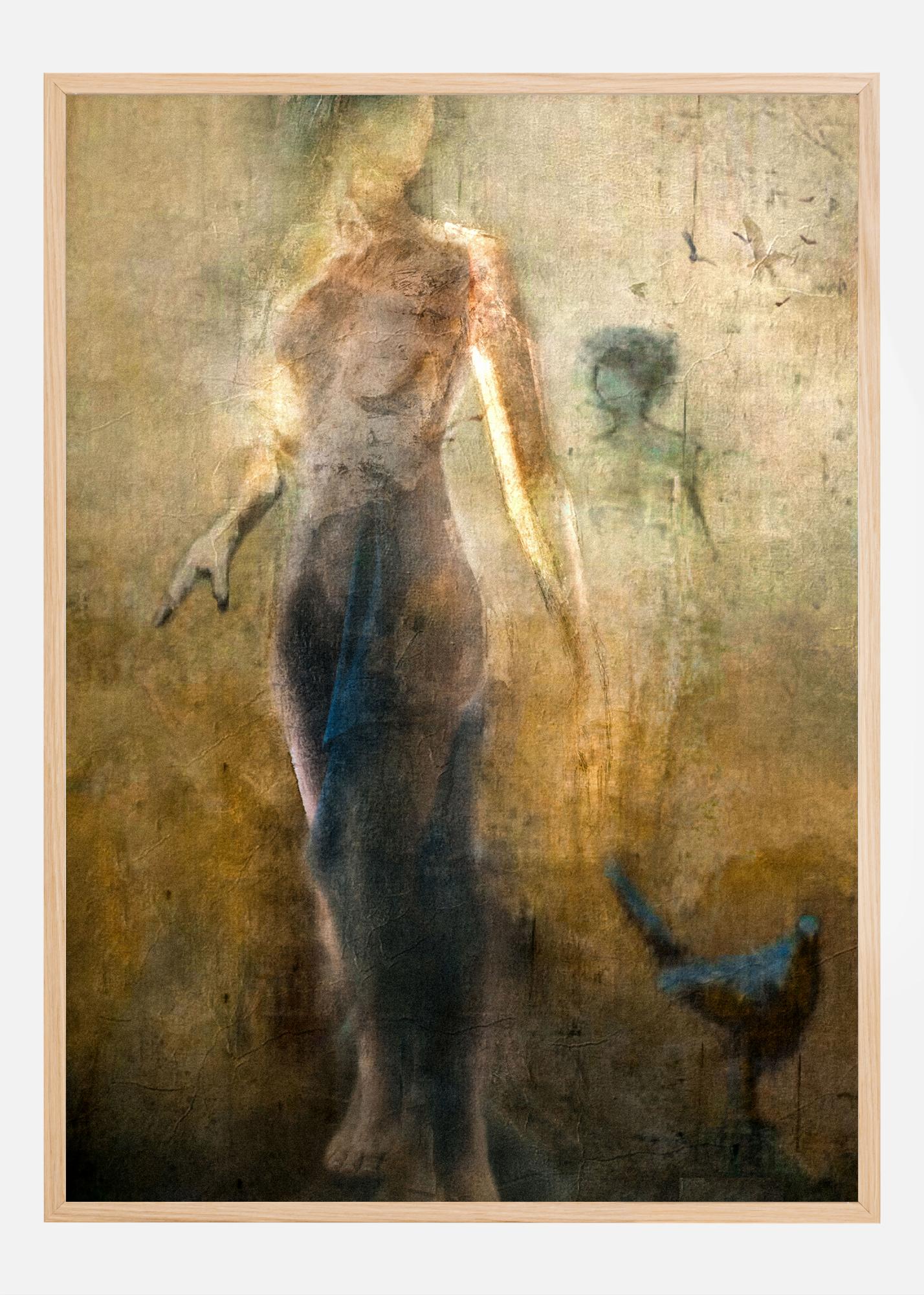Patraukite žvilgsnį šiuo paslaptingu ir sužadinančiu plakatu, kuris atrodo pasakoja istoriją už vaizdo ribų. Tema tyrinėja tapatybės ir atminties temas per figūrą, kuri atsiranda iš grunge įkvėpto fono. Abstrakčios meno kūrinio elementai kyla iš išsklaidytos, beveik vaiduokliškos figūros pasirodymo ir subtilių silueto užuominų fone, tuo tarpu viena paukštė rodosi sklandanti laisvai.