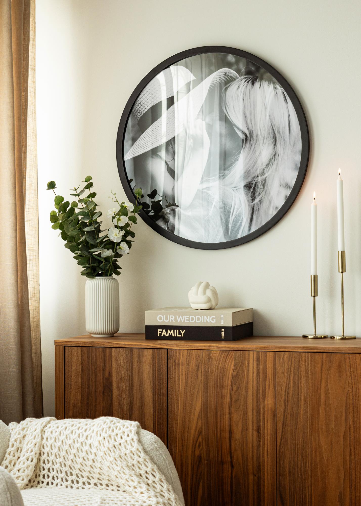 Suteikite savo sienoms modernų akcentą su šiuo elegantišku apvaliu juodos spalvos foto rėmeliu. Turintis 60 cm Ø skersmenį, jis tampa išskirtiniu elementu bet kuriame kambaryje. Plonas 20 mm pločio ir 18 mm gylio rėmelis stilingai ir paprastai įrėmina jūsų nuotraukas.