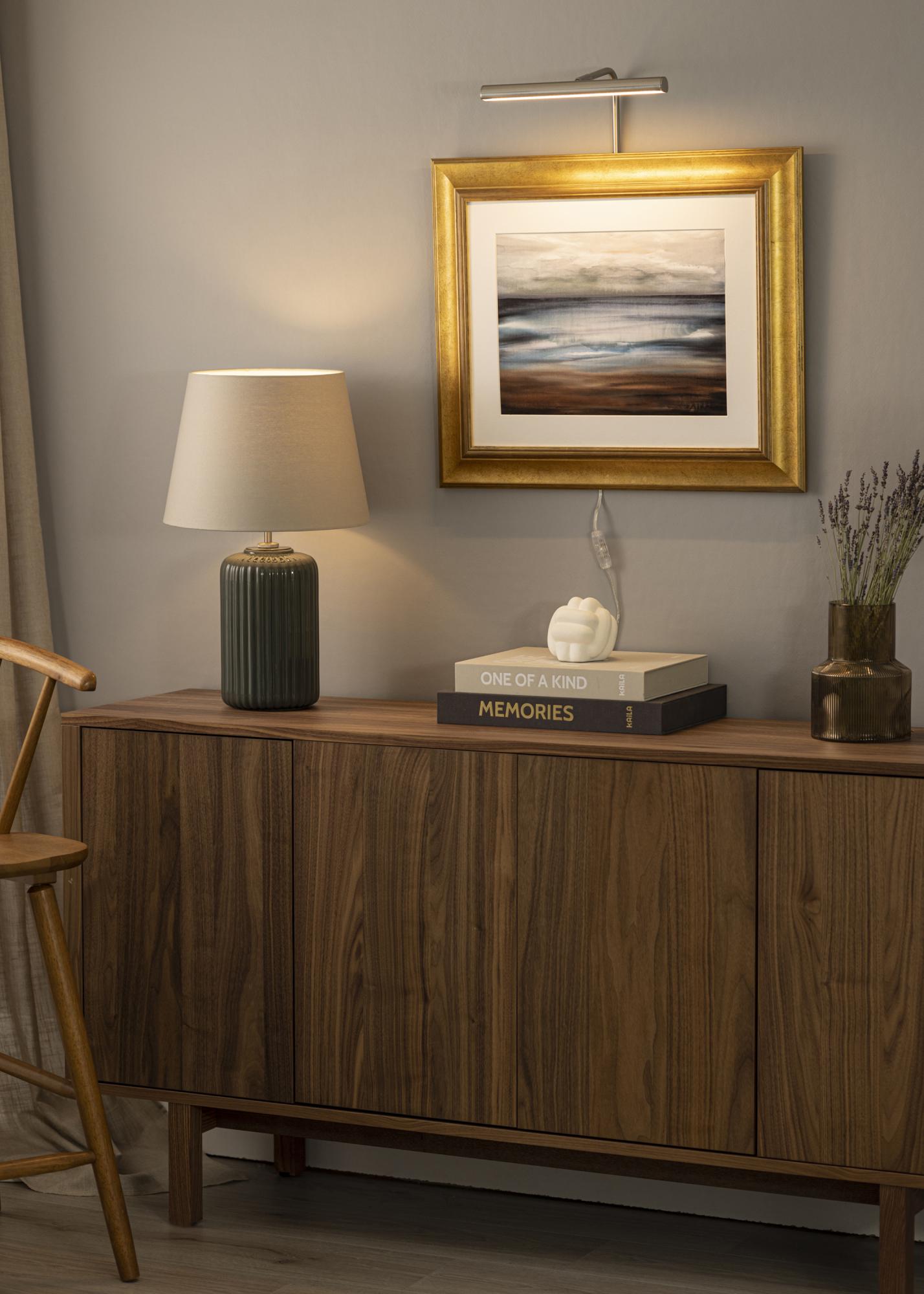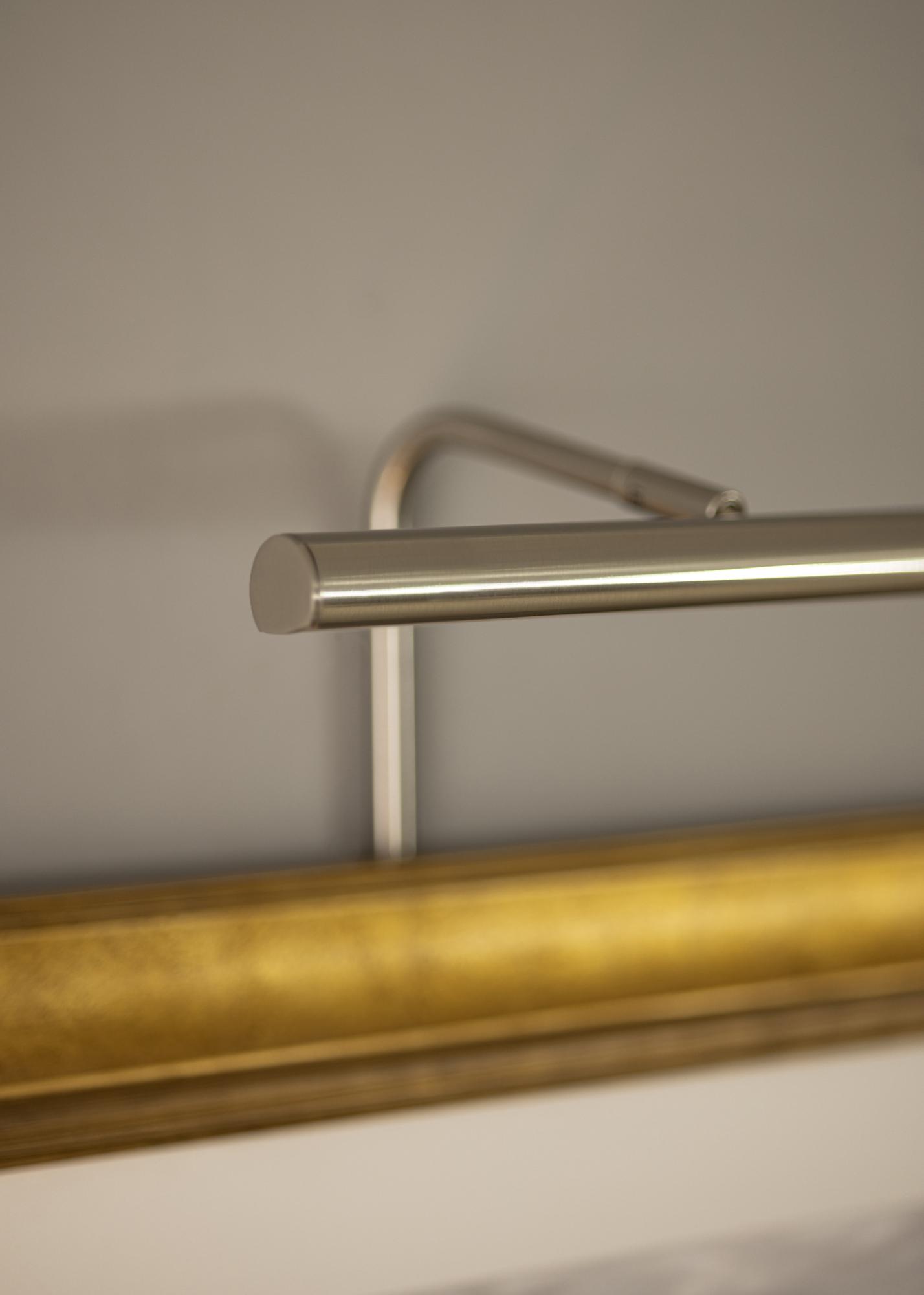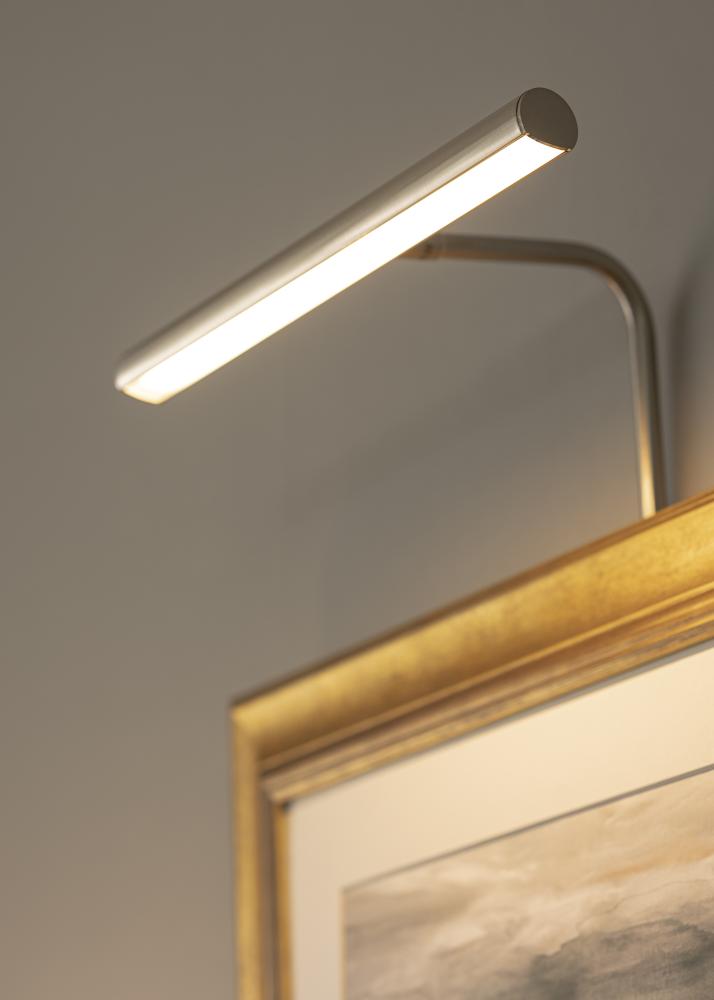 Modernus LED paveikslų apšvietimas, skirtas 60-80 cm pločio paveikslams. Su savo 30 cm ilgiu ir 600 liumenų apšvietimu tai tikrai apšvies jūsų paveikslus. Ant sieninio laikiklio taip pat yra kabliukas, galintis atlaikyti 5 kg, skirtas paveikslo rėmo montavimui.