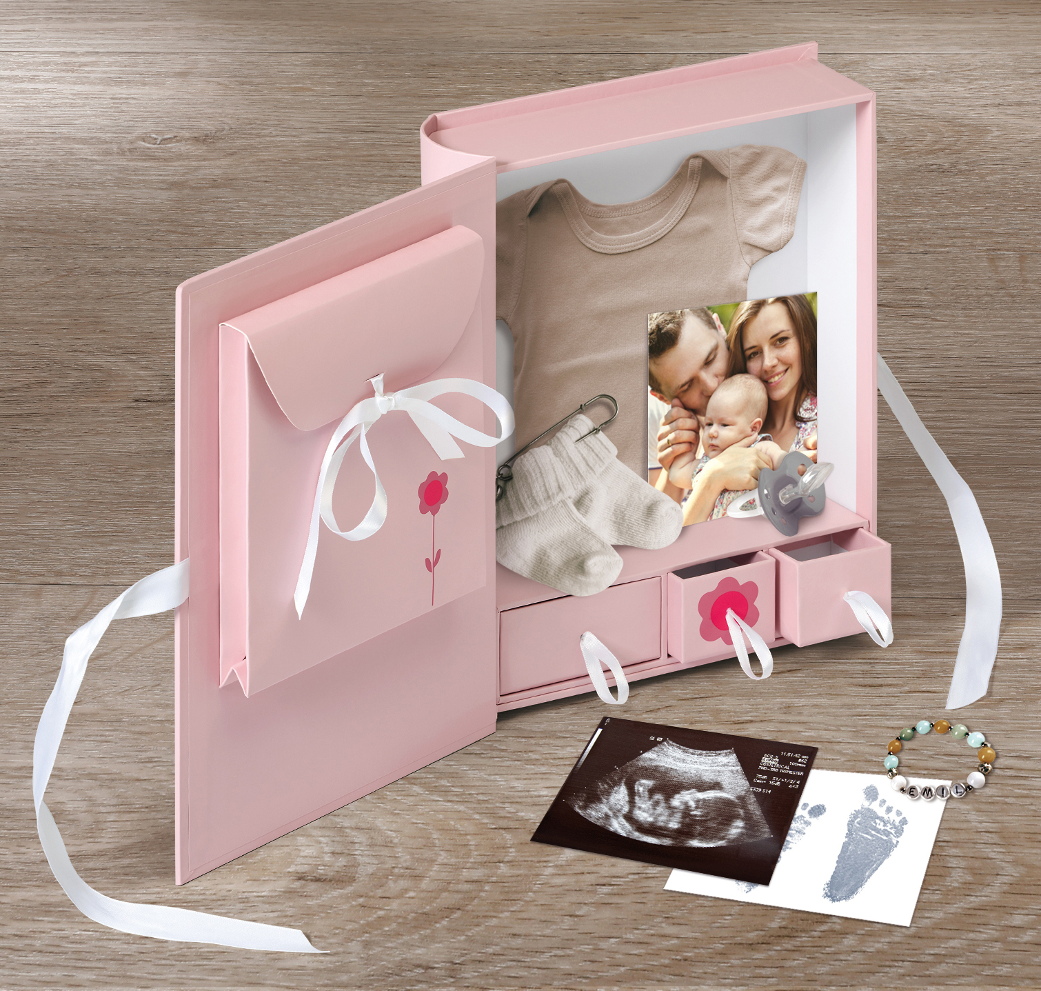 Ši atminties dėžutė yra ir praktiška, ir miela. Tai bus puiki dovana naujai iškeptiems tėvams – žinoma, galite ir patys save palepinti šia puikia laikymo dėžute! Ji puikiai tinka žindukams, mažiems drabužėliams, sveikinimo atvirukams, nuotraukoms ir kitiems prisiminimams iš kūdikio pirmųjų metų laikyti.