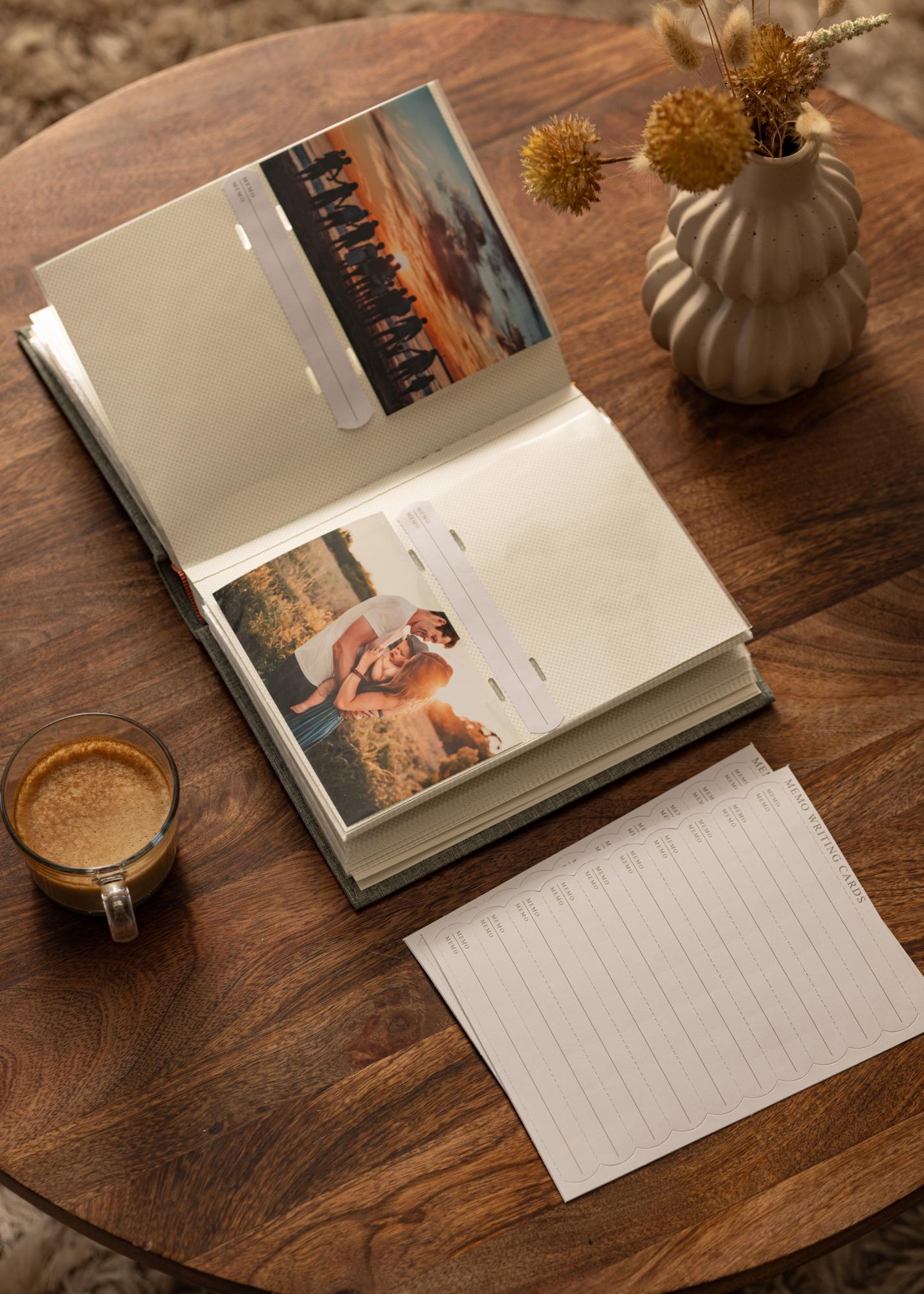 Kiekvienai nuotraukai yra rašymo laukelis, o su nuotraukų kišenėmis kiekvienai nuotraukai, tai taip pat patogu naudoti.