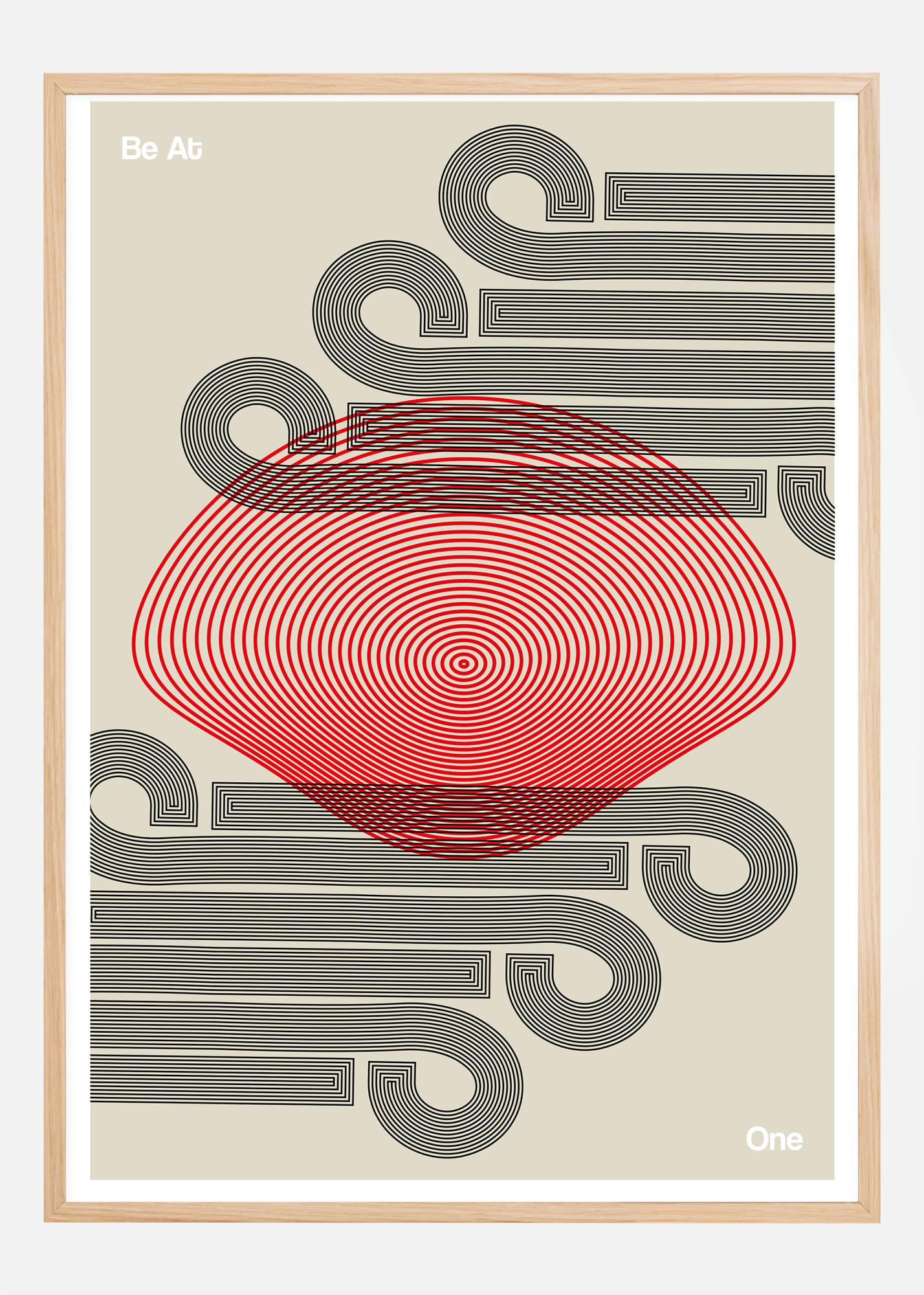 Šis meninis plakatas pavadinimu "Be At One" yra duoklė abstrakčiam menui ir šiuolaikiniam dizainui. Su hipnotizuojančia raudona spirale centre ir juodai baltomis linijomis, kurios sukuria judėjimo iliuziją, šis spaudinys akimirksniu prikaustys dėmesį bet kuriame kambaryje. Jis sukurtas tam, kad patrauktų žiūrovo smalsumą ir įkvėptų apmąstymams, todėl puikiai tiks pokalbio pradžiai svetainėje ar biure.
