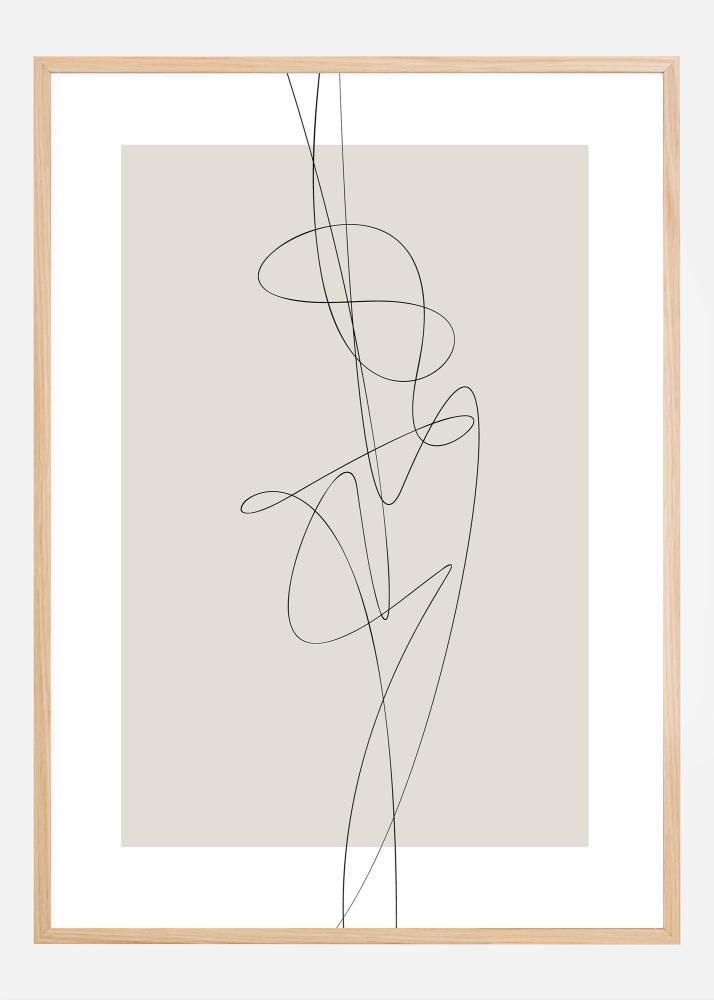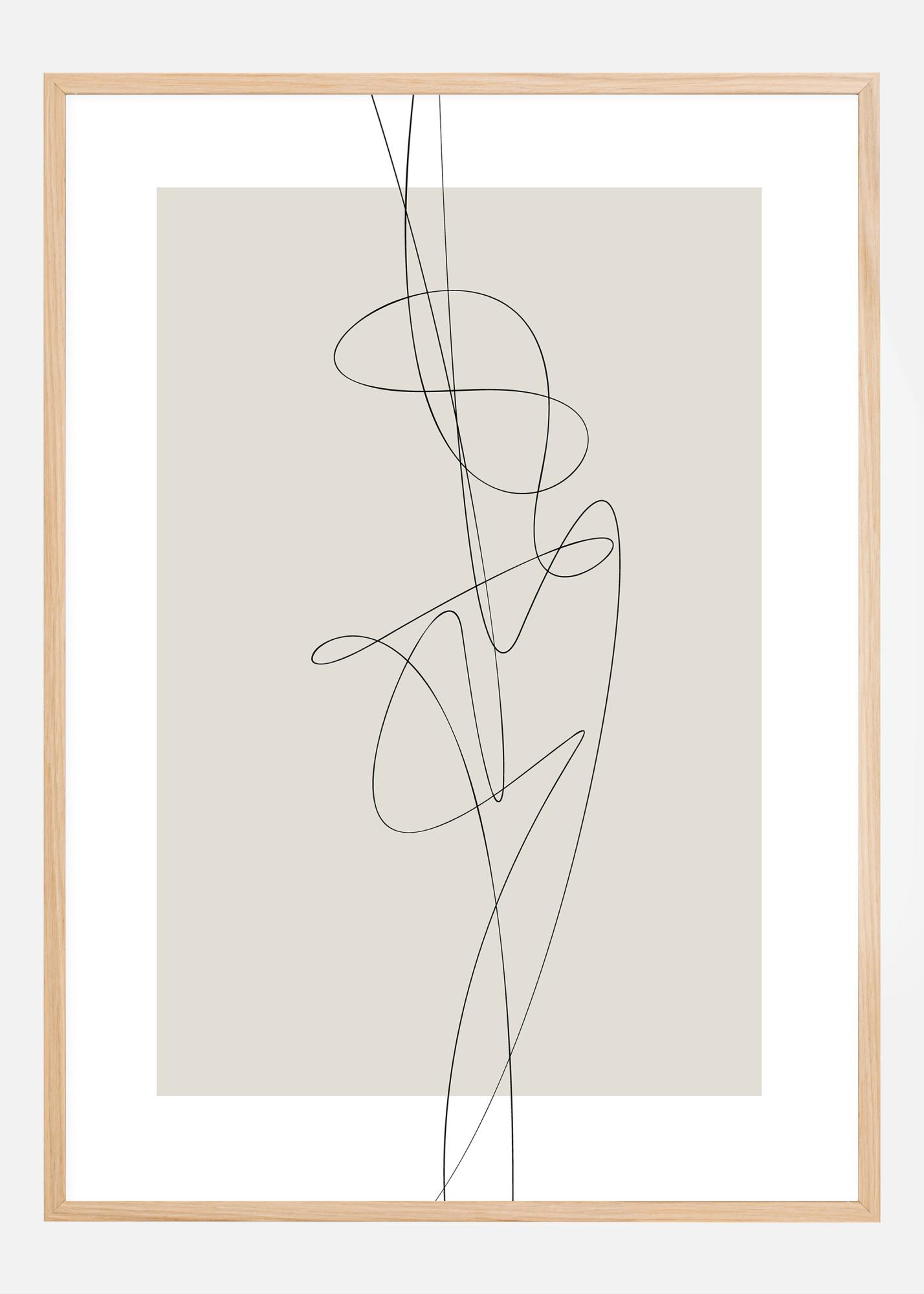 Šis minimalistinis ir abstraktus plakatas yra mūsų kolekcijos dalis ir patiks tiems, kurie vertina moderniojo meno paprastumą. Elegantiška juoda linija vingiuoja per smėlio spalvos foną ir sukuria laisvą formą, kurią galima interpretuoti daugybe būdų. Šis plakatas atstovauja ne tik kūrybinei laisvei, bet ir subtilumui „mažiau yra daugiau“ filosofijoje, todėl jis yra puikus interjero akcentas šiuolaikiškiausiose erdvėse.