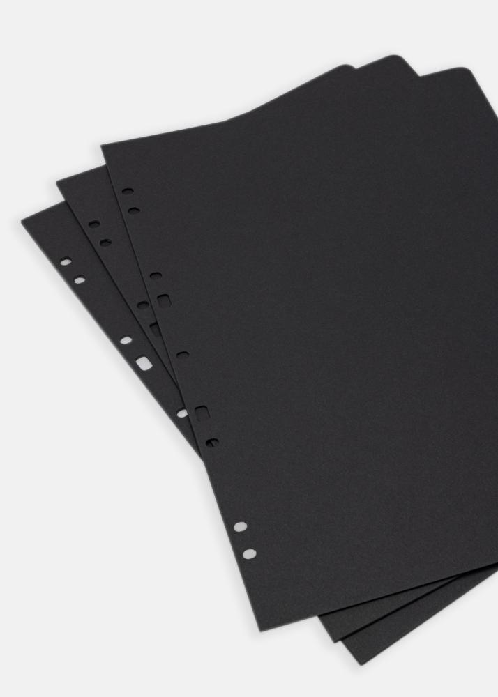 Šie albumo lapai SA4 dydžio yra puikiai tinkami segtuvams ir suteikia pakankamai vietos jūsų nuotraukoms ir prisiminimams montuoti bei saugoti. Juodi lapai sukuria elegantišką kontrastą ir stilingai pabrėžia jūsų nuotraukas.