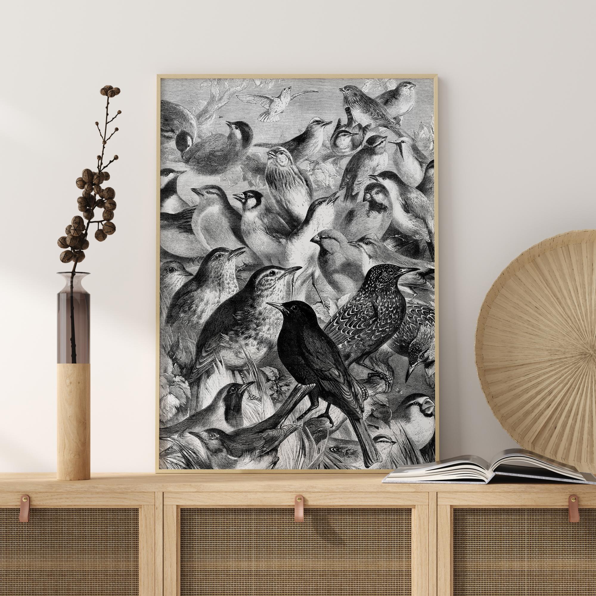 Juodai baltas plakatas su įvairiais paukščiais. Sužinokite viską apie paukščius naudodami šį atspaudą su įvairiais britų paukščiais. Užsiimkite tyrinėjant paveiksle esančius paukščius ir sužinokite apie juos. Leiskite jiems dar labiau išsiskirti pakabindami paveikslą ant šviesios spalvos sienos.