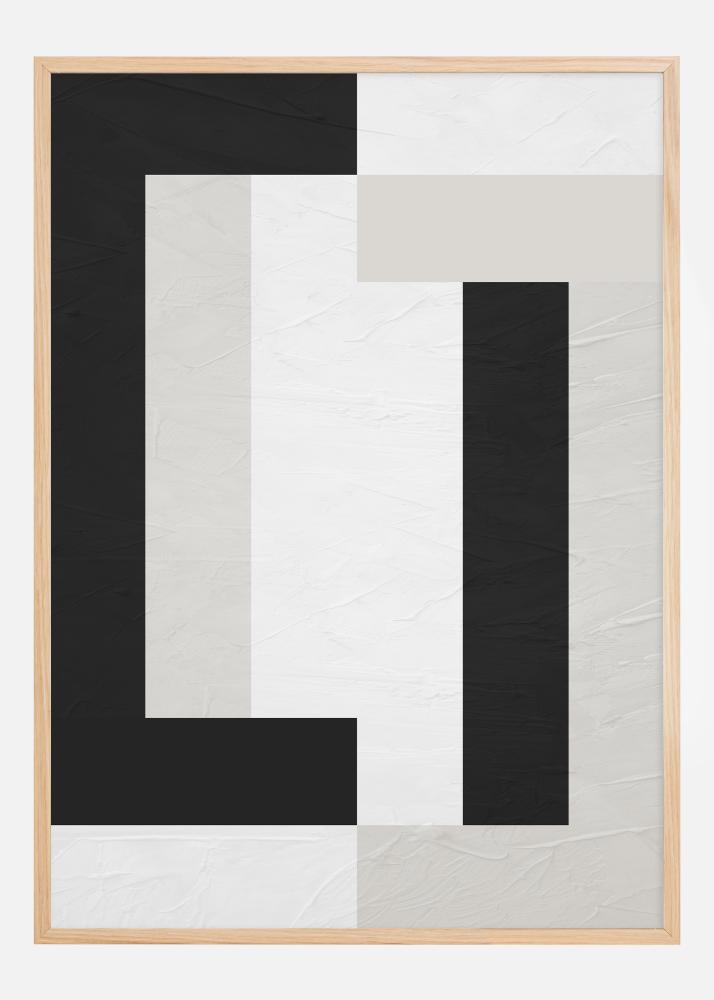 Šis išskirtinis plakatas sujungia moderniojo meno paprastumą su drąsiu geometriniu dizainu. Kontrastingas žaidimas tarp juodos ir baltos spalvų yra suskaidytas į stačiakampius blokus ir linijas, kurie kartu sukuria pusiausvyros ir asimetrijos įspūdį. Ideali tiems, kurie vertina stiprius vizualinius išreiškimus, ši spauda puikiai tinka minimalistiniams ar šiuolaikiniams namams. Ji siūlo stilingą paprastumą, kuris gali tapti kambario centru arba prisidėti prie didesnės, sudėtingesnės kompozicijos.