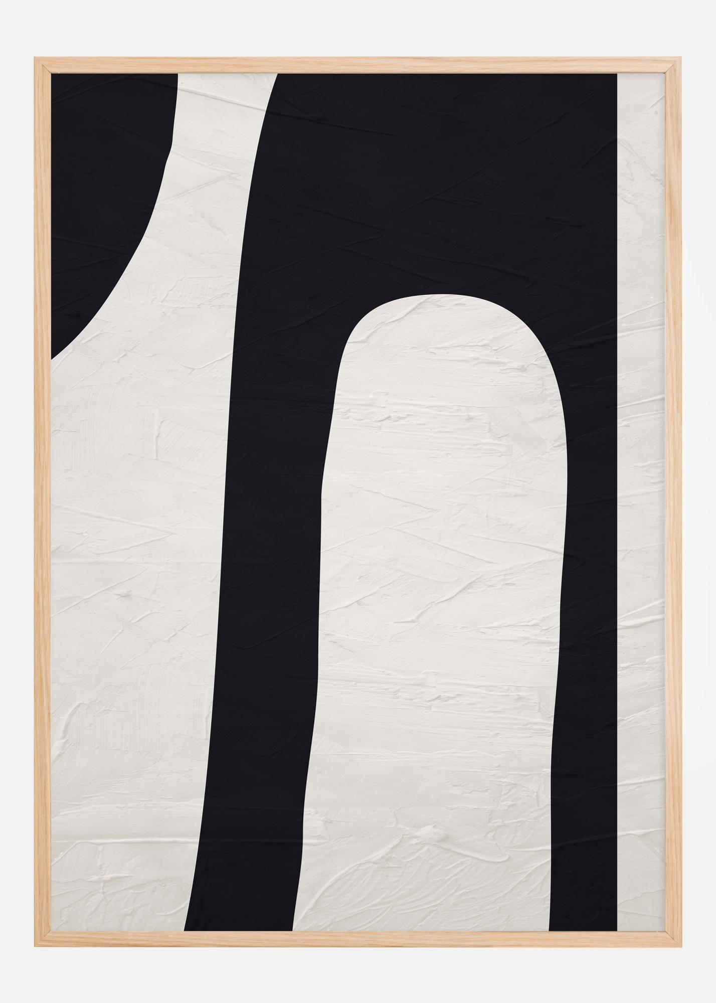 Šis meninis plakatas pristato žaidimą su abstrakčiomis juodomis linijomis prieš kreminį baltą foną, sukuriant stiprų ir vizualiai stimuliuojantį kontrastą. Dizainas žaidžia su erdve ir perspektyva, naudodamas juodų linijų formą, siekdamas užsiminti apie dimensiją ir gylį. Tai minimalistinis, bet galingas vaizdas, balansuojantis tarp moderniojo meno ir grafinio dizaino.