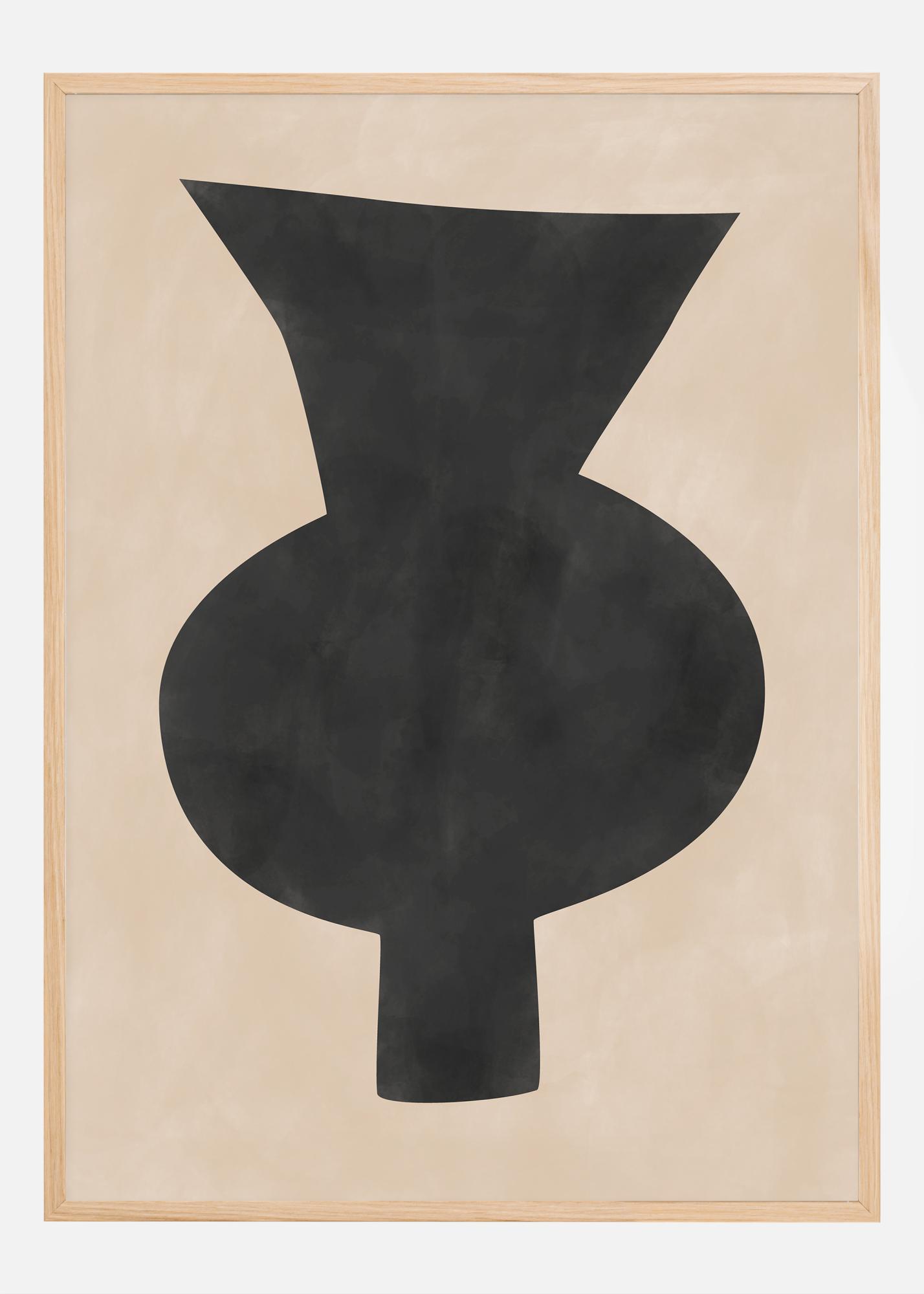 Šis plakatas užfiksuoja šiuolaikinio abstraktaus meno esmę drąsia ir paprasta juoda forma, primenančia vazą ar skulptūrą, kuri suteikia galingą vizualinį efektą neutralioje fone. Kontrastas tarp gilios juodos ir ramios smėlinės spalvos daro tai puikiu plakatu tiems, kurie nori padaryti rafinuotą, bet tvirtą interjero pasisakymą. Formos dinamiška ir šiek tiek organinė siluetas sukuria judėjimo ir ramybės pojūtį, kviesdama į refleksiją ir interpretaciją.