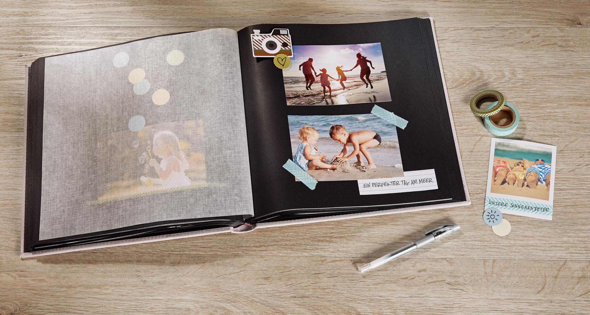 Rekomenduojame pridėti, pavyzdžiui, nuotraukų kampus, kad jūsų nuotraukų montavimas būtų itin patogus. Jei norėtumėte parašyti ką nors apie savo prisiminimus, turime aukštos kokybės rašiklius įvairių gražių spalvų. Ant juodo fono geriausia tinka aukso arba sidabro spalvos rašiklis.