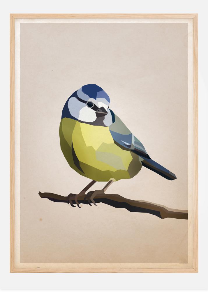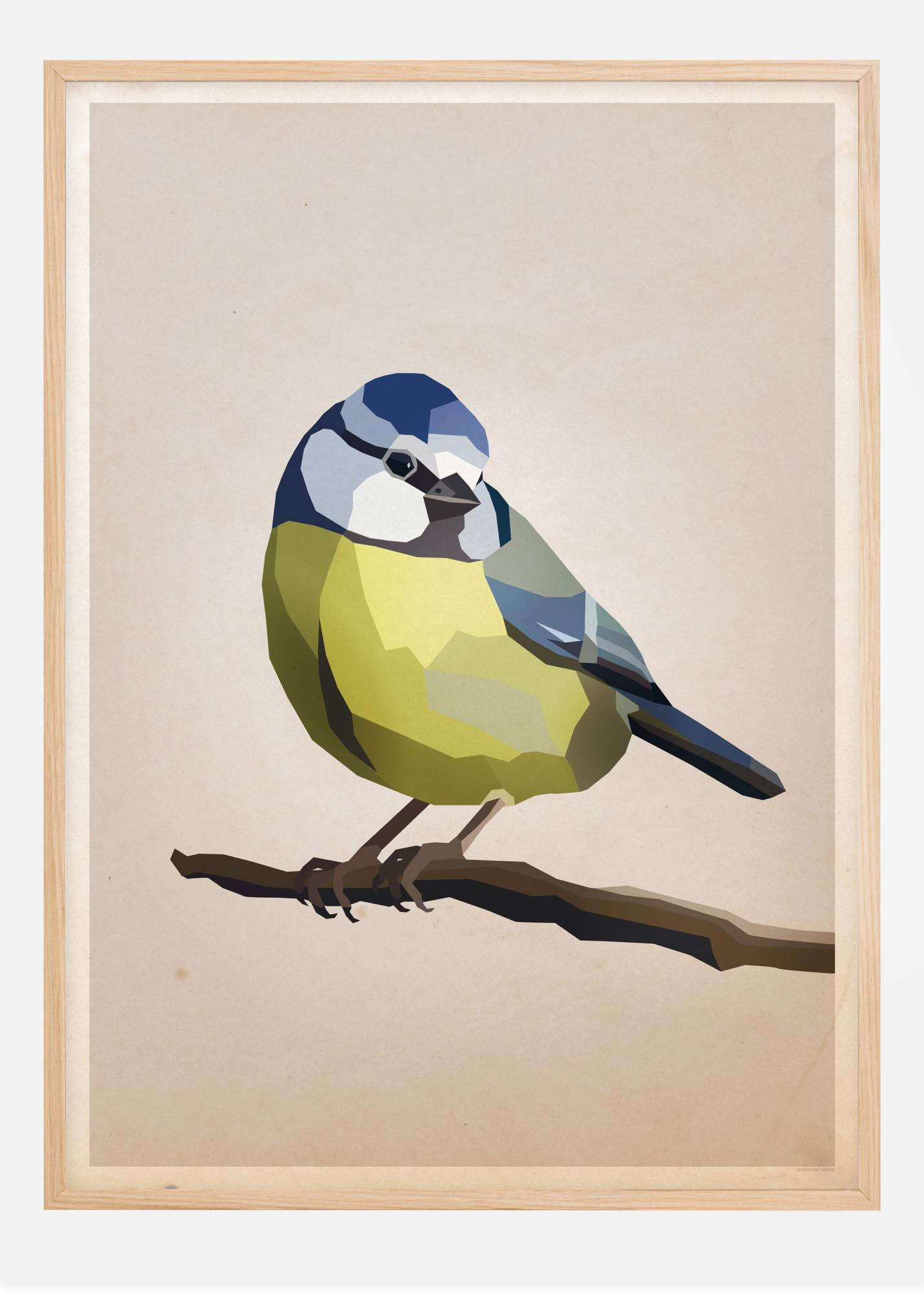Ornitologinis plakatas su mažu, apkūniu mėlynu paukščiuku. Šis žavingas vaizdas yra abstraktus šio mielo paukščio spaudinys. Mėlynasis zylė sėdi ant vienos šakos pilkame fone. Norėdami suteikti mielą išvaizdą, galite derinti geltoną ir mėlyną paukštį su švelnesnėmis spalvomis ant savo sienos.