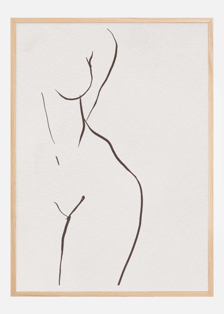 Plakatas su moters klubens. Ryškiai pažymėtos juodos linijos ant balto fono apibrėžia moters šoną nuo klubo iki peties. Minkštos kreivos linijos veda žvilgsnį aplink jos formas šiame sklandžiame paveiksle. Pakabinkite tai ant savo sienos, kad suteiktumėte meninį pojūtį.