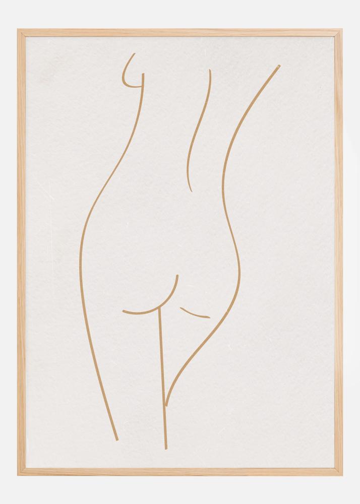 Paprastas piešinys su moterimi, atsukusia nugarą į tave. Plonos rudos linijos yra viskas, ko reikia, kad būtų sukurta šios iš nugaros pozuojančios moters forma. Linijos žvilgsnį kelia aukštyn išilgai nugaros šiame paprastame, bet elegantiškame piešinyje ant balto fono.