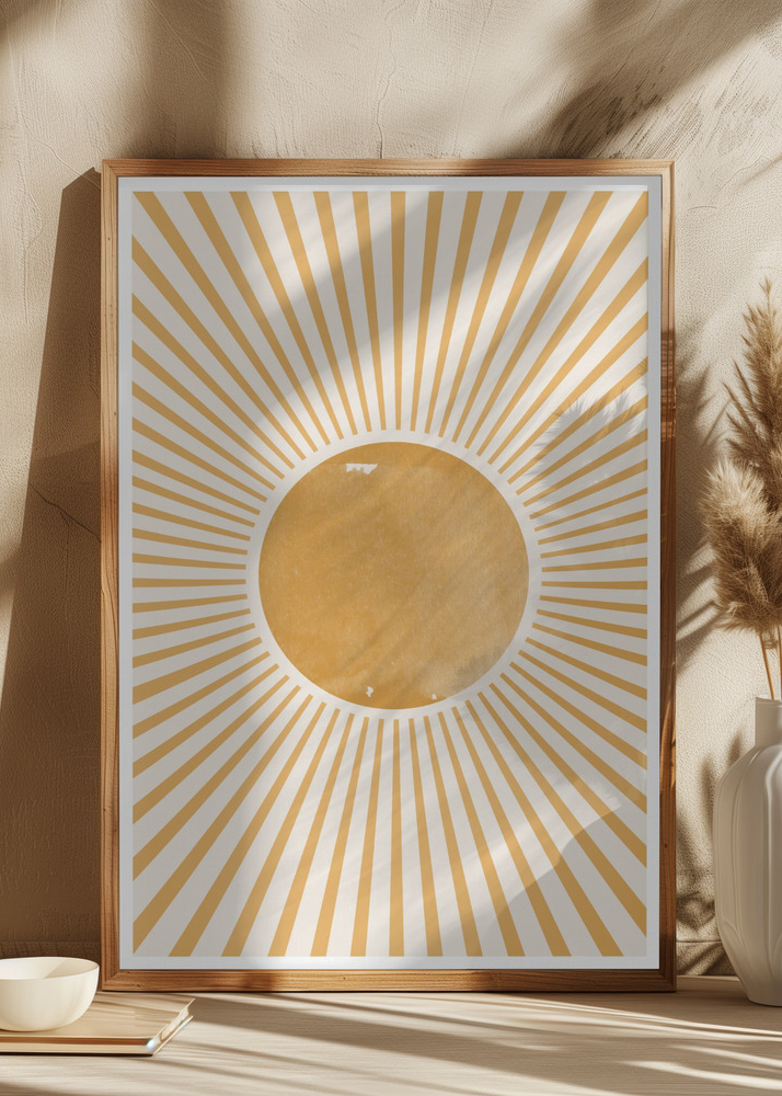 Šis atspaudas gali apšviesti bet kokį kambarį ir suteikti boho-chic stiliaus elementą jūsų interjerui. Jis puikiai tinka tiems, kurie nori į savo namus įtraukti gamtos grožio dalelę ir šviesos jausmą. Jo universali saulės simbolika daro jį vertingu priedu į daugelį skirtingų interjero erdvių, nuo svetainės iki jogos kambario ar vaikų kambario.