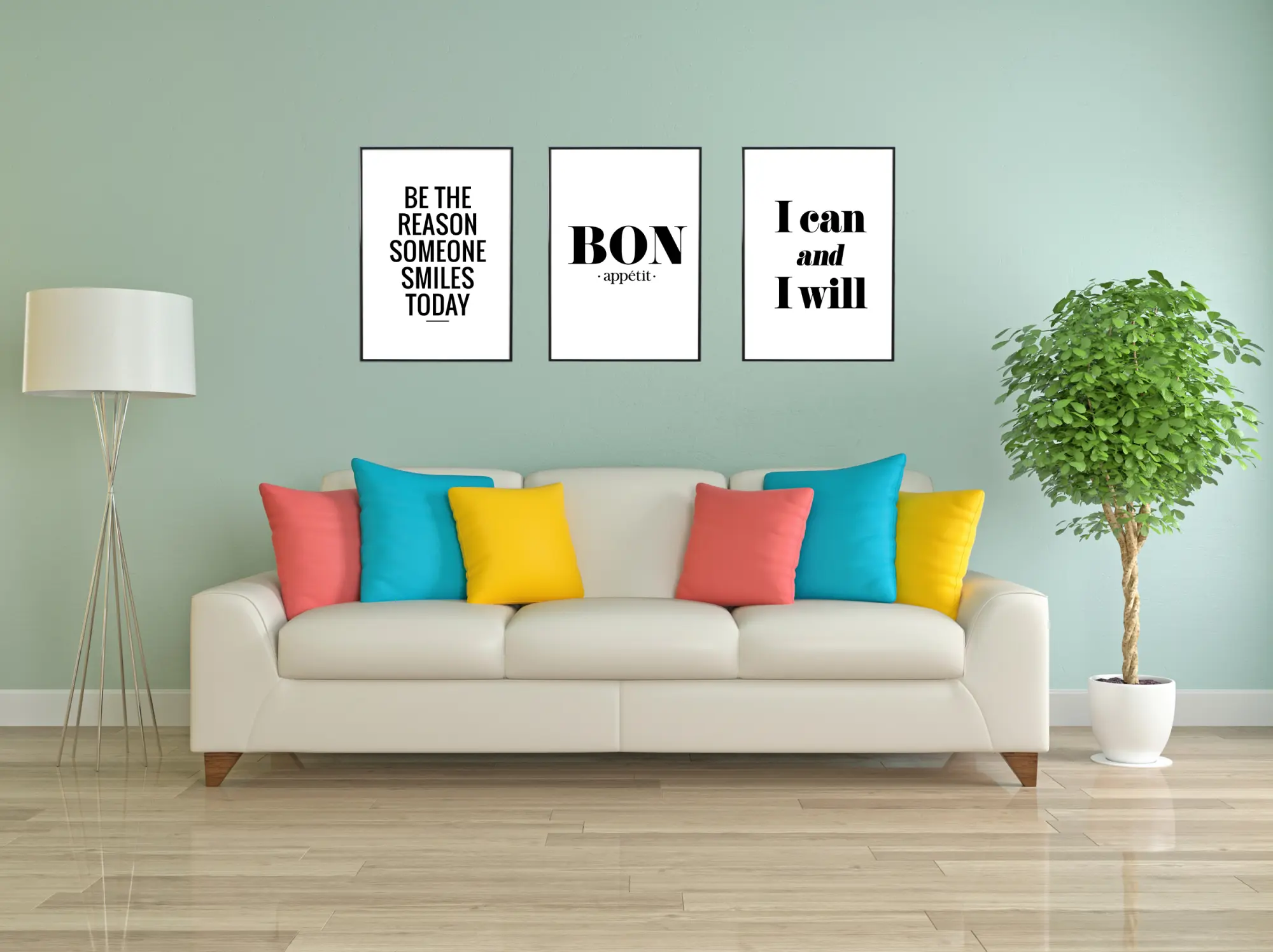 Madingas plakatas, kuris puikiai derinamas su kitais motyvais, kad sukurtumėte madingą paveikslo sieną.