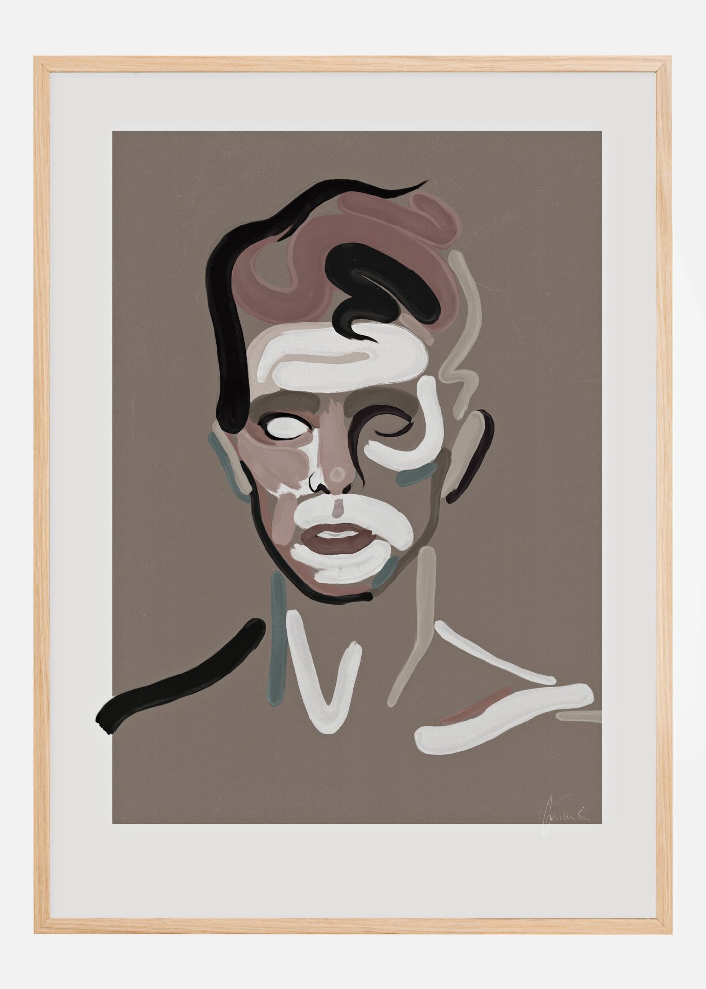 Abstraktus Dovydo Bowie portreto plakatas, sukurtas storais teptuko potėpiais. Balta, juoda, mėlyna ir rožinė spalvos naudojamos efektingam portretui sukurti. Drąsūs potėpiai piešia veidą, kai jis žiūri, ir sukuria įtikinamą, abstraktų kūrinį, puikiai tinkantį paprastai sienai pagyvinti.