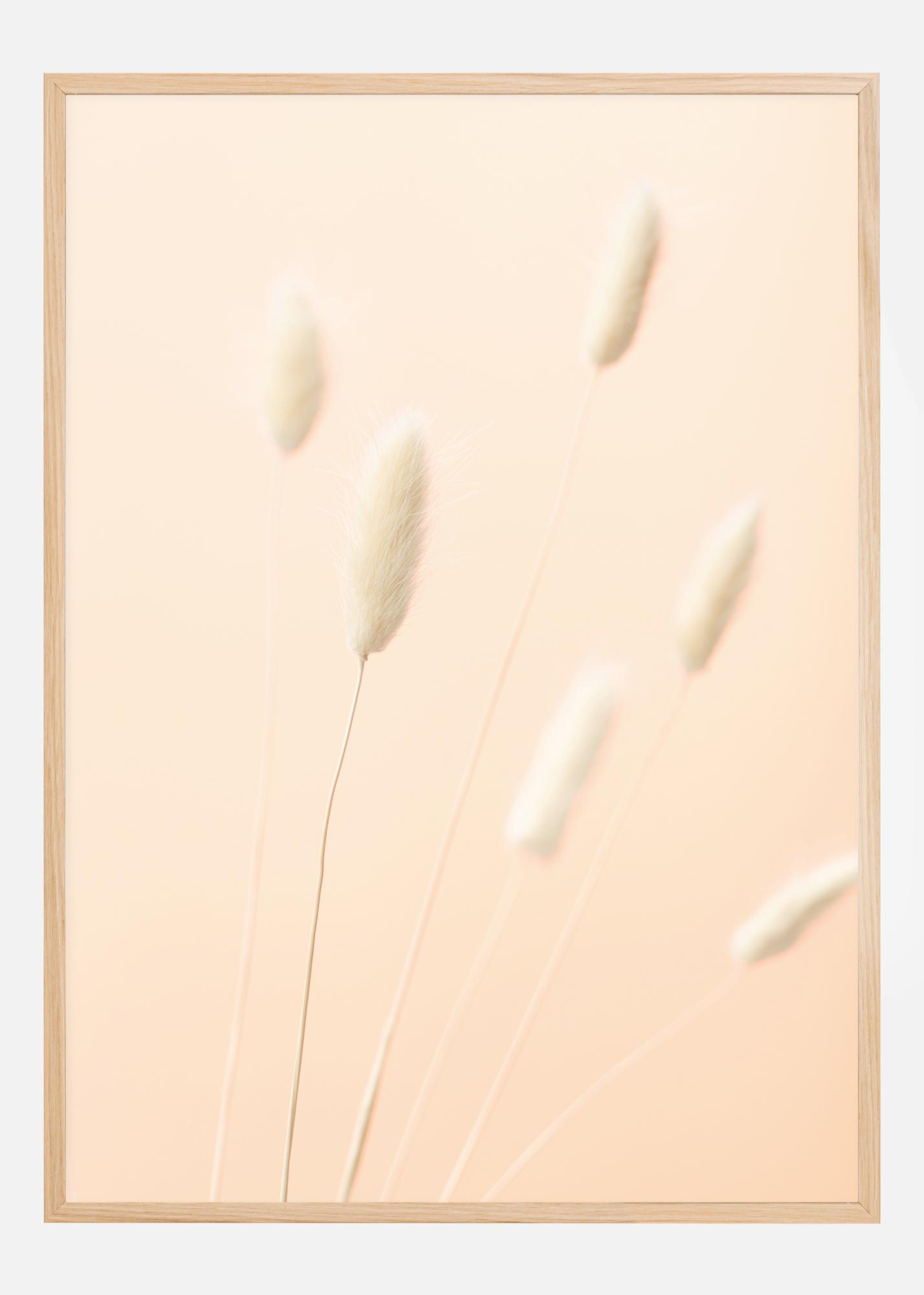Gėlių plakatas su kiškio uodegos stambių planų nuotraukomis. Šis plakatas yra paprastas, elegantiškas ir minimalistinis, ir jūs valandų valandas spoksosite į pūkuotus kiškio uodegos stiebus. Pridėkite šį ramų atspaudą savo namuose.
