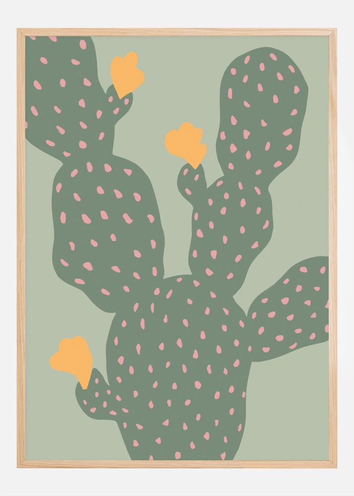 Šis žaismingas ir žavus plakatas vaizduoja stilizuotą kaktuso vaizdą su ryškiais akcentais. Su savo švelniai žaliu fonu ir žaliomis kaktuso figūromis, padengtomis rausvomis dėmėmis ir geltonomis gėlėmis, vaizdas suteikia gaivų ir džiugų jausmą. Šis meno atspausdinimas derina žaismingumą su modernia dizaino estetika ir būtų puošni sienų dekoracija vaikų kambaryje, šviesioje virtuvėje ar kūrybinėje darbo vietoje, kuriai reikalinga gamtos įkvėpta humoro ir spalvų dozė.