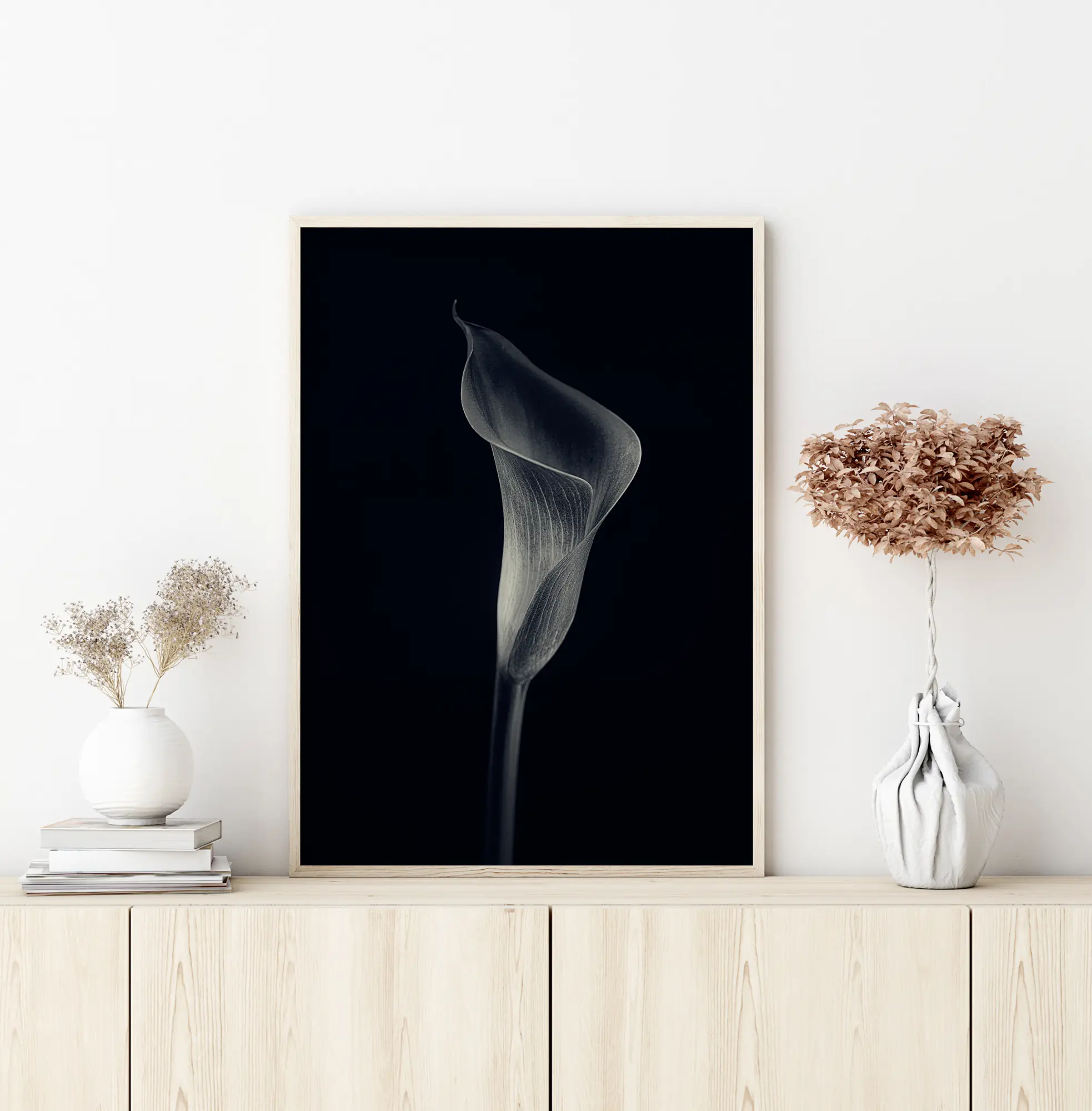 Plakatas su vieniša lelija, kuri sukuria eterinį spindesį. Atvirkštinis šios lelijos neigiamas vaizdas suteikia gėlei paslapties prieš juodą foną. Ši neįprasta nuotrauka tampa pokalbio tema, kai ji kabo ant baltos sienos, siekiant didesnio dramatiškumo efekto.