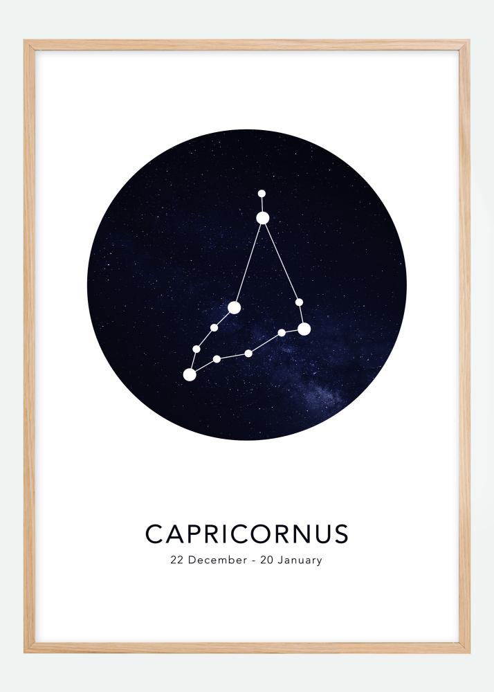 Padovanokite asmeninį paveikslą mylimam žmogui! Šis stilingas plakatas vaizduoja Ožiaragio žvaigždyną juodame ir mėlyname žvaigždėtame danguje. Apačioje yra vardas ir atitinkamos datos anglų kalba.