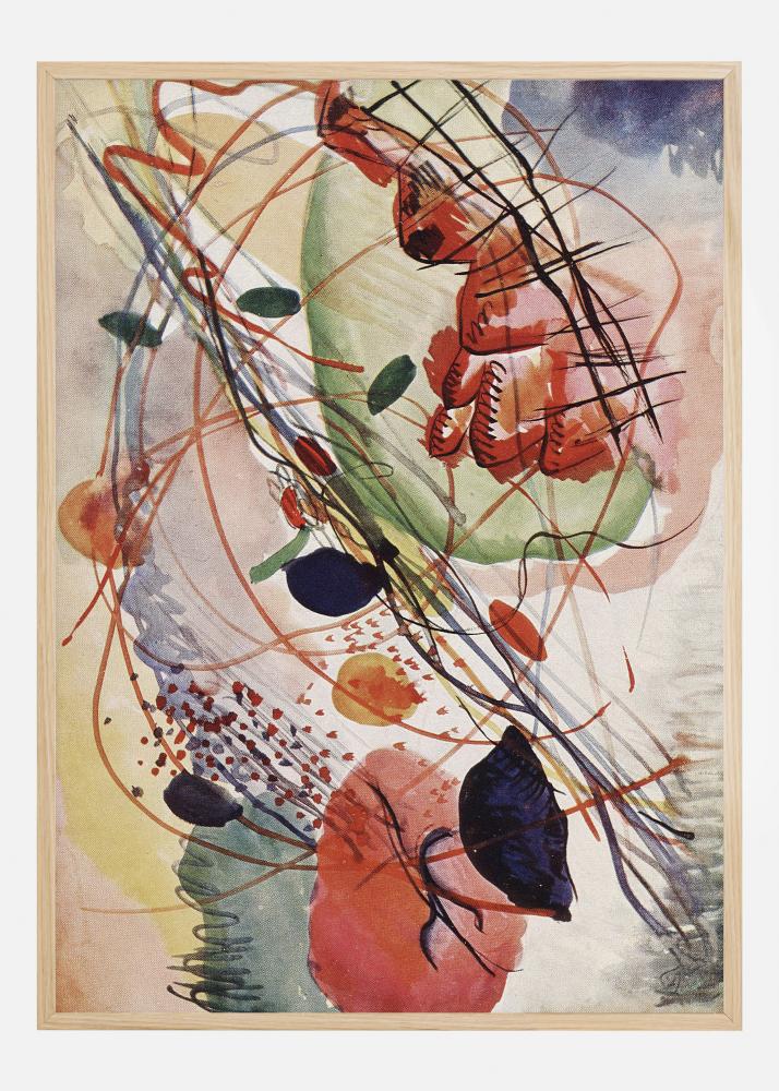 Gyva afiša kupina abstrakčių spalvų ir formų, kurios sukuria dramatišką, beveik chaotišką vaizdą. Didelių spalvų šuorai, spalvingi taškeliai ir dryžuotos linijos daro tai dramatišku kūriniu, kai žvilgsnis klajoja per paveikslą, siekiant atrasti, kas vyksta. Jūs pajusite dramatizmo pojūtį, kai pakabinsite šį kūrinį prieškambarije.