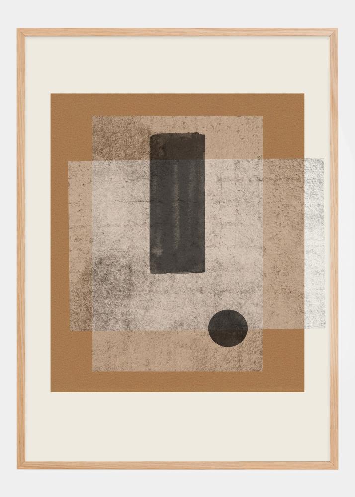 Šis plakatas yra duoklė abstrakčiosios dailės meistrams, kurių darbai žaidė su forma ir tekstūra, siekiant sukurti pusiausvyrą ir gylį. Perdengtos rudos, juodos ir pilkos spalvų stačiakampės kuria erdvės ir dimensijos pojūtį, o vienišas apskritimas subtiliai, bet galingai suteikia dinamikos kompozicijai.