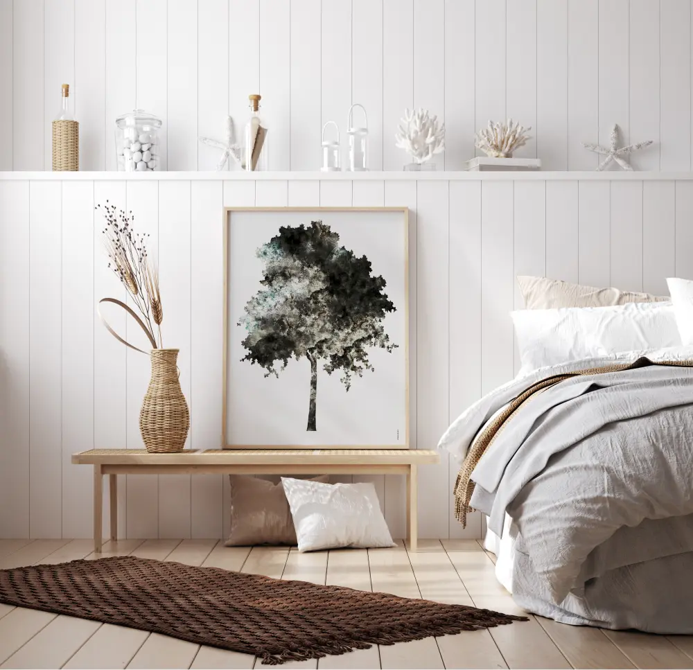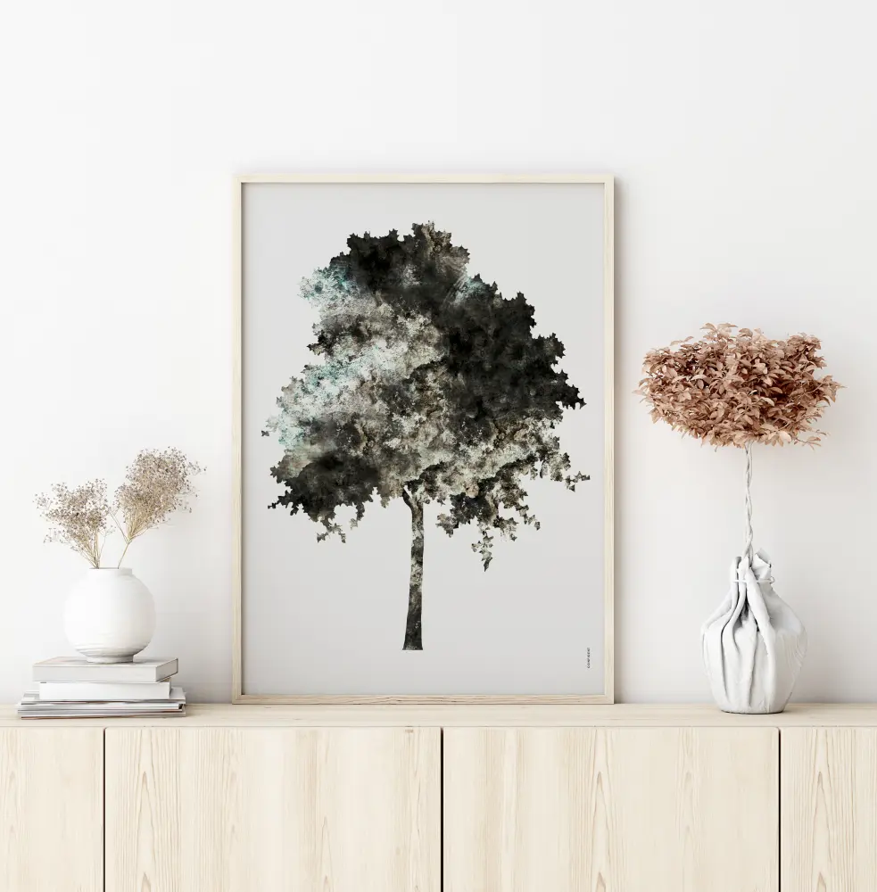 Grafikos meno plakatas medžio pavidalu, sukurtas grafikos menininkės Isabell Larsson, VISSLA Vizualinis Dizainas. Puikus minimalistinis paveikslas harmoninėse spalvose, kuris puikiai tinka tiek prieškambaryje ar virtuvėje, tiek svetainėje, miegamajame ar bibliotekoje.