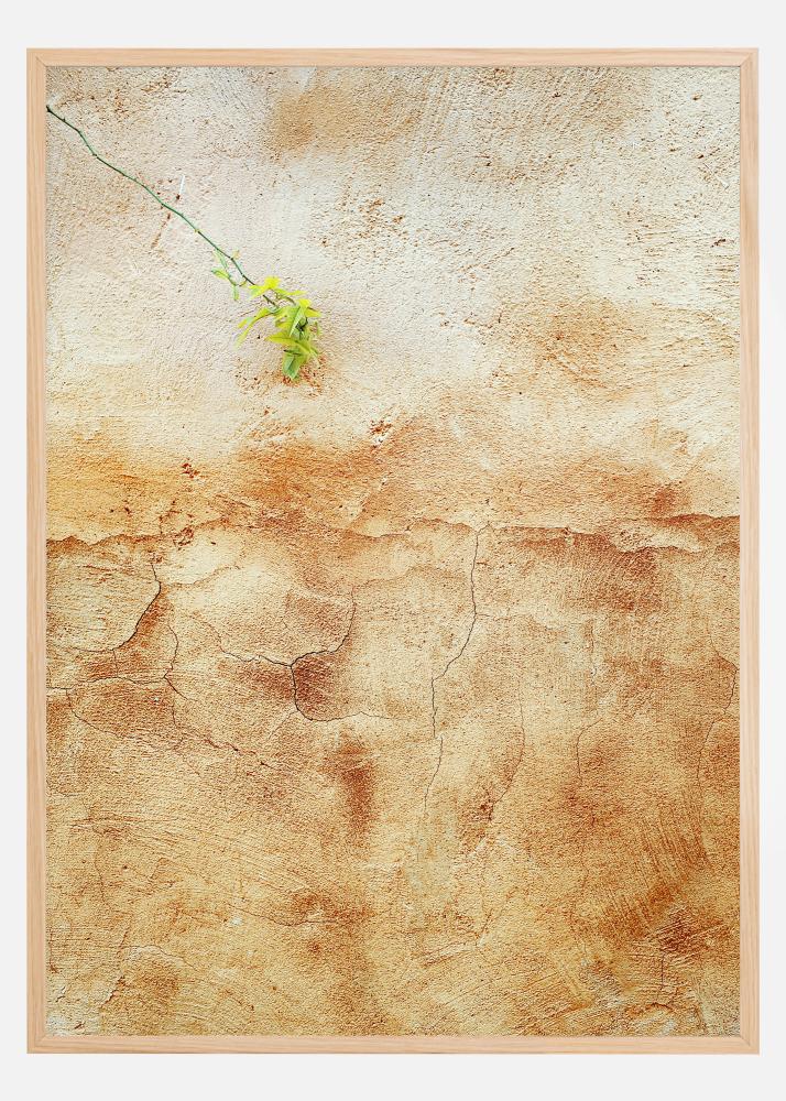 Stambus kadras plakatas su sutrūkusios sienos vaizdu, kurioje auga nedidelis šviesiai žalias augalas plyšyje. Švelniai žemės rudos sienos spalva kompensuojama plonu žaliu plyšiu ir šviesiu augalu. Leiskite akims klaidžioti, kol jos ras visas keistas šio tekstūrinio paviršiaus spragas. Derinkite šį kūrinį su panašios spalvos siena, kad pasiektumėte geriausią efektą.
