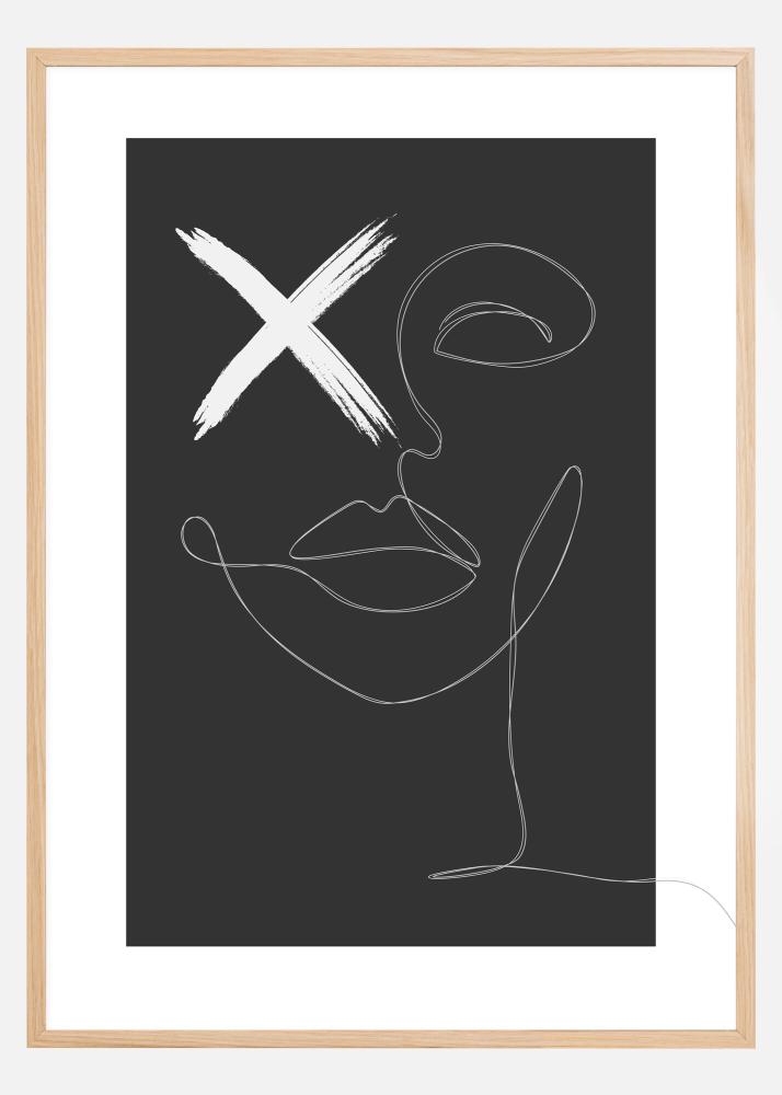 Abstraktus plakatas su veidu, nupieštu plonomis baltomis linijomis juodame fone. Baltos linijos visos jungiasi, kad kūrinyje būtų sukurtas veidas vientisu judesiu. Ten, kur turėtų būti akis, yra dramatiškas baltas kryžius. Ką tai reiškia? Pakabinkite šį kūrinį centrinėje vietoje, kad paskatintumėte pokalbį apie meną namuose.
