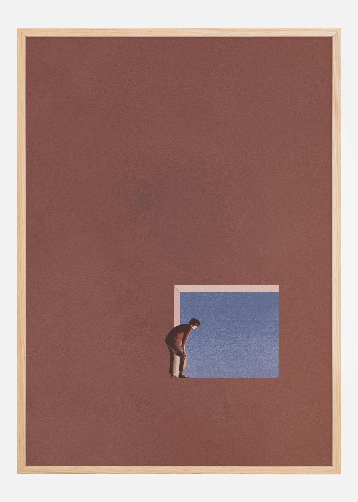 Šis intriguojantis ir konceptualus plakatas užfiksuoja vienišą asmenį, pasilenkusį pirmyn ir žiūrintį pro kvadratinį atidarymą į mėlyną erdvę, kuri laužo aplinkinį rudą paviršių. Šis paprastas, bet galingas vaizdas gali būti laikomas smalsumo ir žmogaus troškimo tyrinėti bei atrasti nežinomą reprezentacija. Tai taip pat gali būti galimybių lango metafora ir svarbos pasinaudoti atsiradusia proga simbolis.