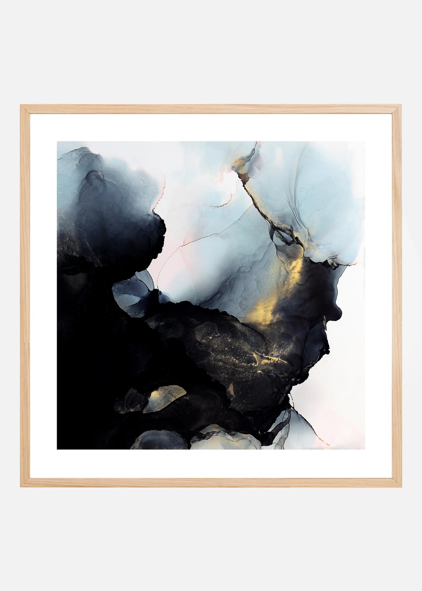 Abstraktaus meno plakatas, akvarelė, juodos, mėlynos ir aukso atspalvių su lengvais rožinės intarpais, sukurtas menininkės Gabrielos Roberg. Gražus plakatas, kurį galima derinti su kitais iš mūsų Gabrielos Roberg asortimento.