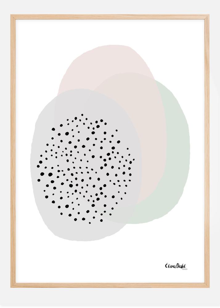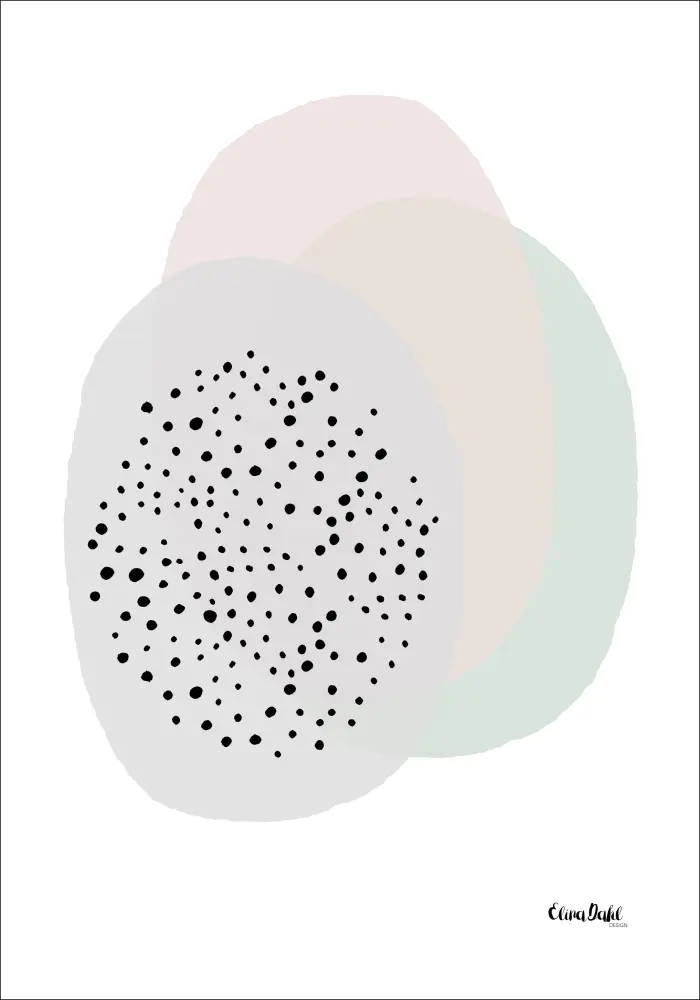 Meninis plakatas su keistai suformuota dėme iš trijų skirtingų spalvų, iš kurių vienoje yra eilė mažų juodų taškų. Mėlyna, rožinė ir žalia dalys persidengiančių formų papildo gražią abstrakčios nuotraukos išvaizdą. Leiskite jiems tapti ryškesniais, pasirinkdami derančią spalvą ant sienos, kur pakabinsite šį kūrinį.