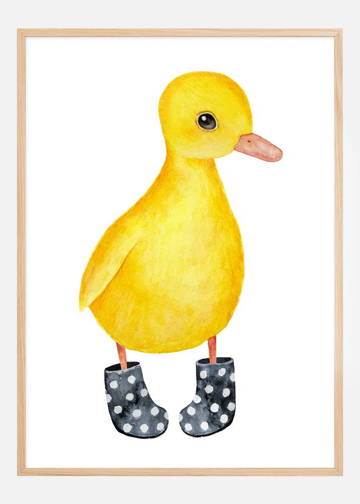Atraskite mūsų saulėtos ančiuko plakato žavesį, kuris skleidžia džiaugsmą ir subtiliai žaidžia su humoru. Ši žavinga iliustracija vaizduoja mielą, geltonos spalvos pūkų apvilktą ančiuką, apsirengusį polka taškuotais guminiais batais - vaizdas, kuris tikrai iššauks šypseną. Tai žaismingas atspaudas, puikiai tinkantis vaikų kambariui arba kaip šviesi ir linksma detalė bet kuriame namuose, suteikianti malonumo jausmą ir nekaltą nuotykių troškimą.