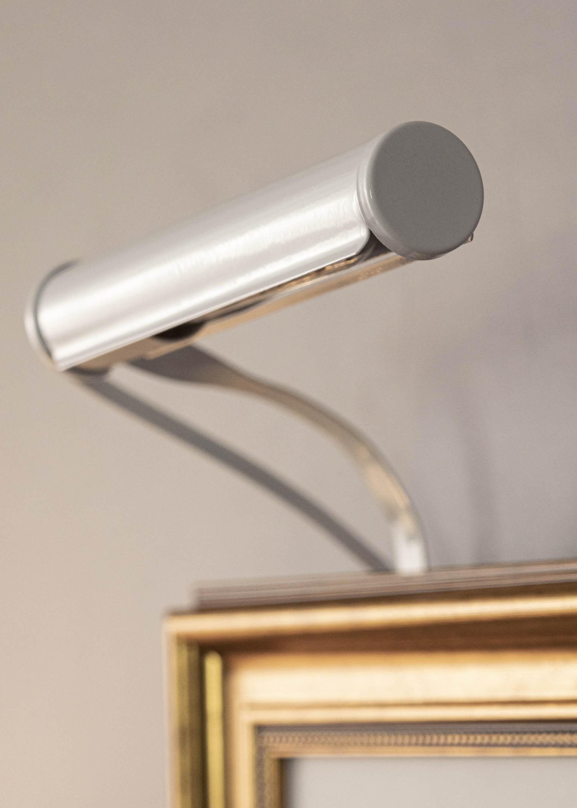 Paprastai paveikslų apšvietimą tvirtinate rėmo gale, šio metodo trūkumas yra tas, kad reikia medinio rėmo (kai kurie kompozitiniai rėmai taip pat tinka), kuris turi plačią profilį, kad būtų galima prisukti prie rėmo. Naudodami mūsų sieninį laikiklį, jums nereikia apie tai galvoti ir tiesiog paprastai montuojate savo paveikslų apšvietimą tiesiai ant sienos už paveikslo.