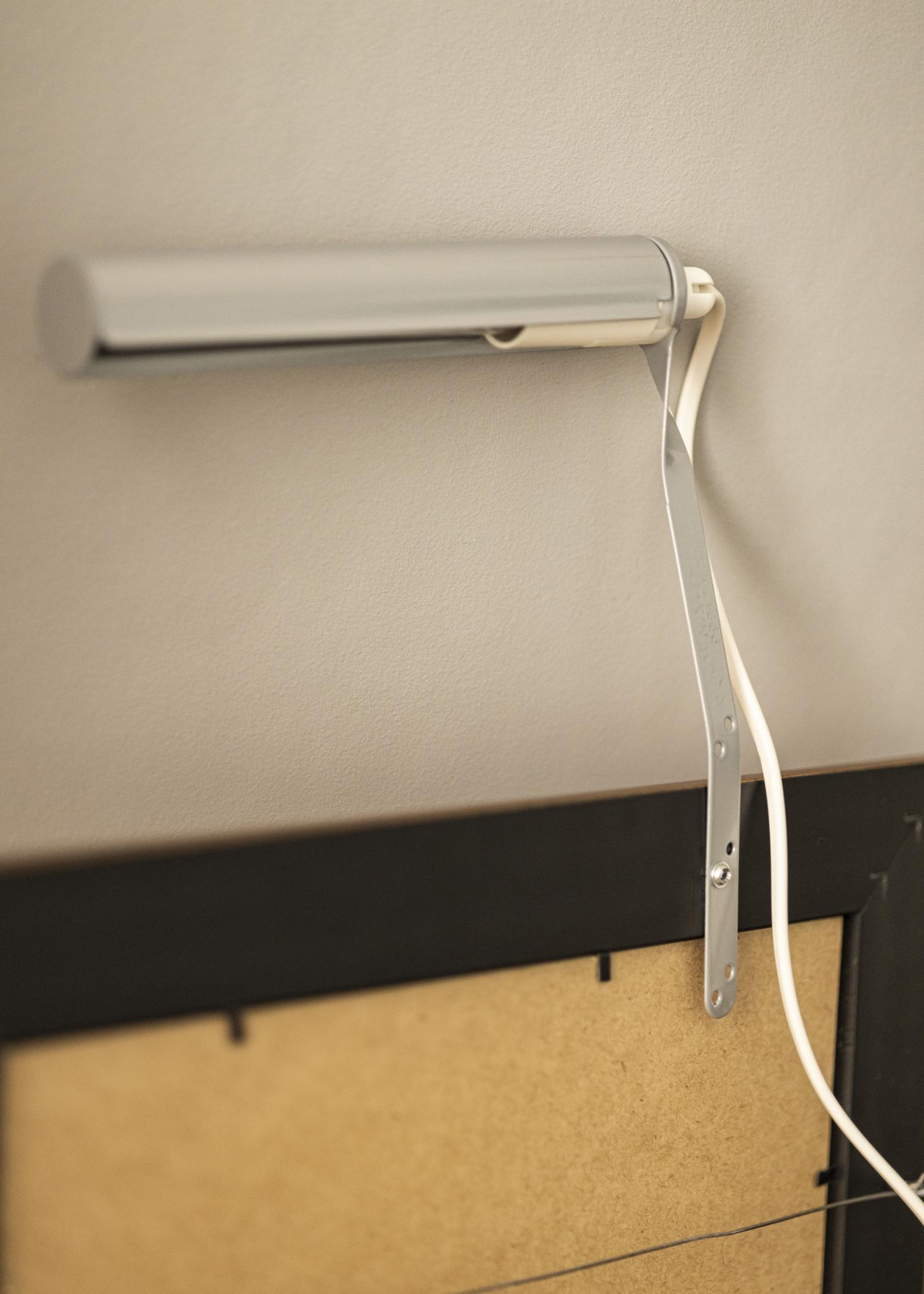 Paprastai paveikslų apšvietimą tvirtinate rėmo gale, tačiau tam reikia medinio rėmo (kai kurie kompoziciniai rėmai taip pat tinka), kuris turi plačią profilį, kad būtų galima pritvirtinti varžtais. Naudodami mūsų sieninį laikiklį, jūs neturite apie tai galvoti, nes tiesiog pritvirtinate paveikslų apšvietimą tiesiogiai ant sienos už paveikslo.