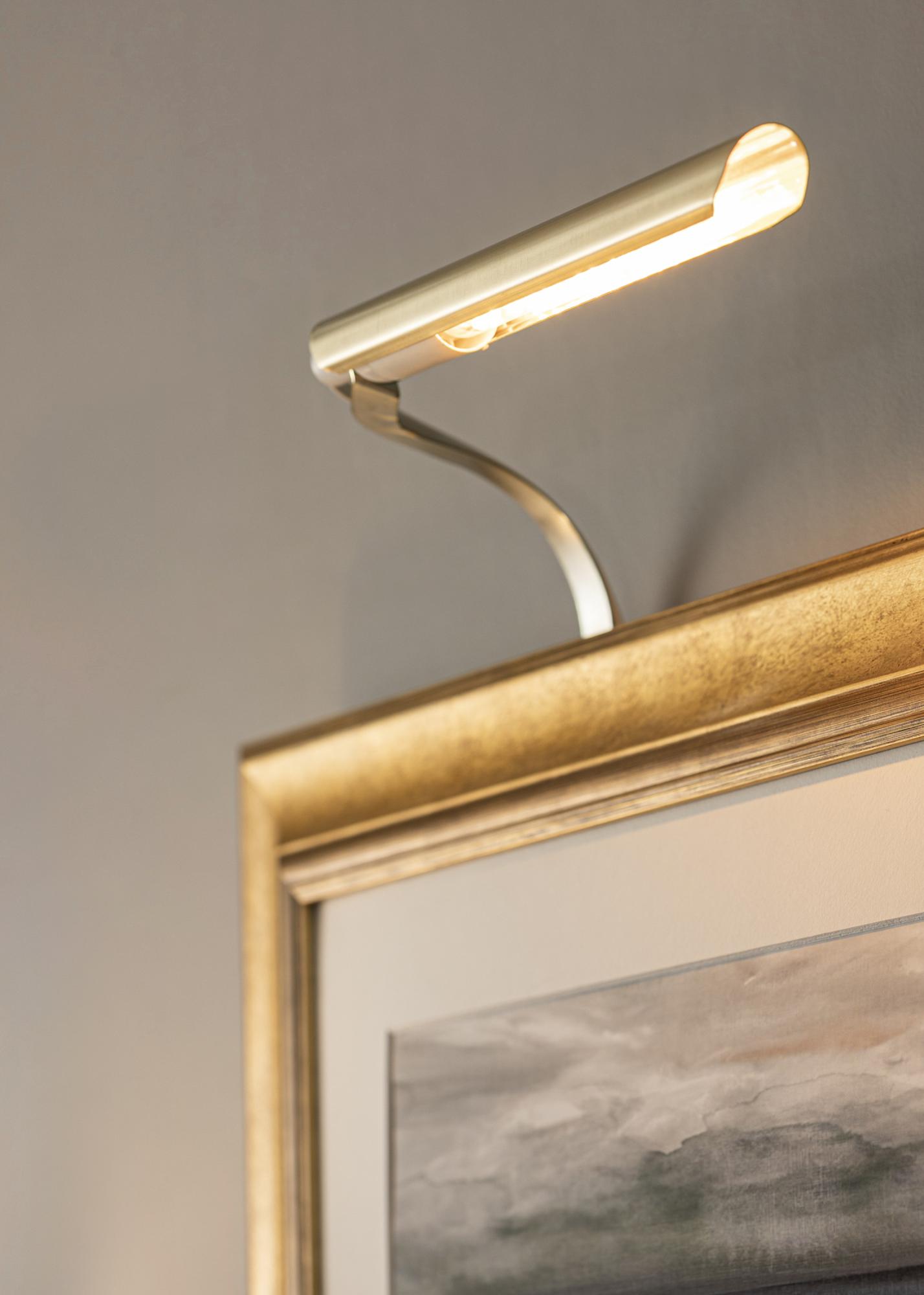 Dažniausiai pavaikslų apšvietimą tvirtinate rėmo nugarinėje dalyje, tačiau tam reikalingas medinis rėmas (kai kurie kompozitiniai rėmai taip pat tinka), kuris turi platų profilį, kad būtų galima prisukti rėmą. Su mūsų sieniniu tvirtinimu nereikia apie tai galvoti, nes tiesiog montuojate paveikslų apšvietimą tiesiai ant sienos už paveikslo.