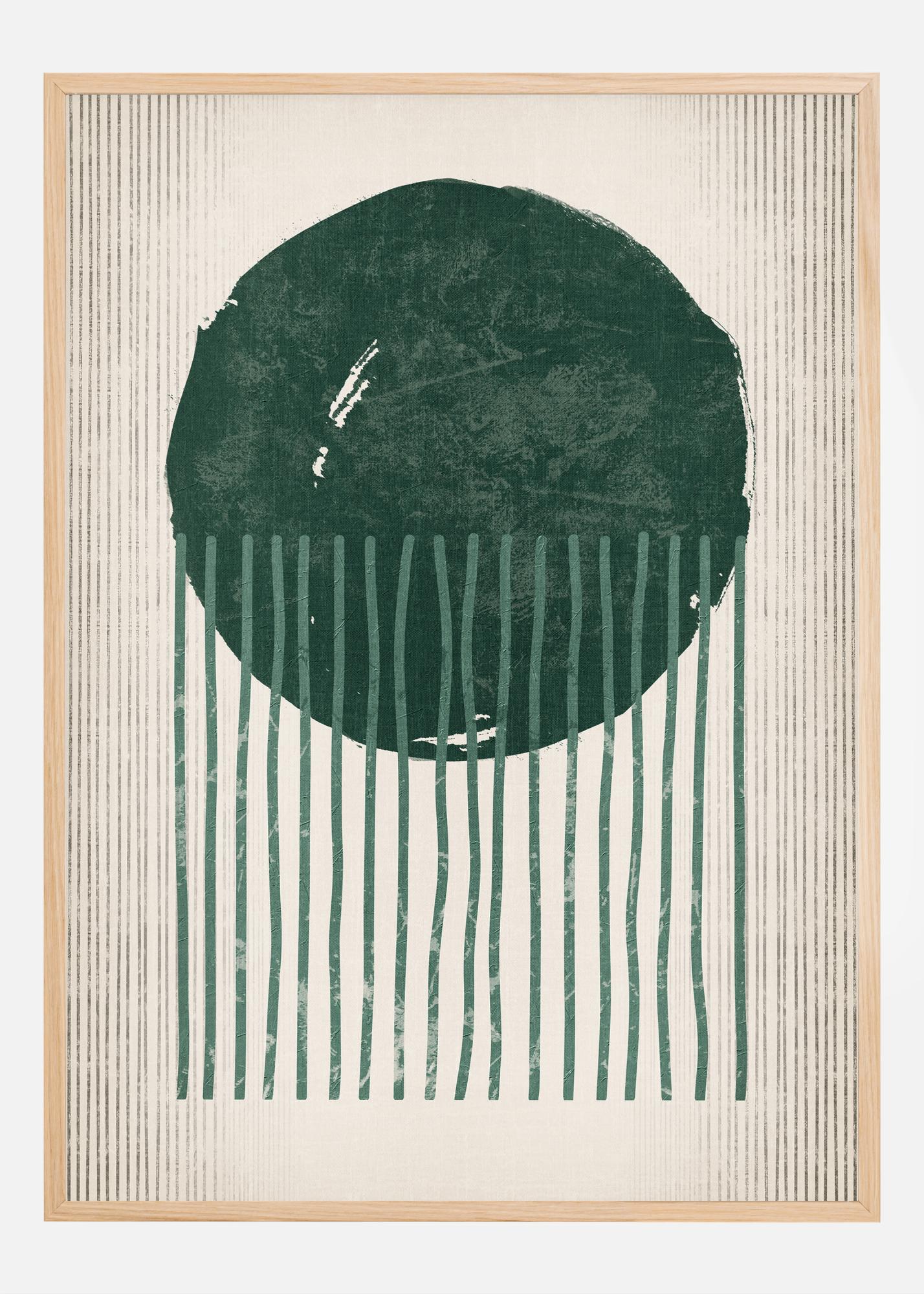 Šis plakatas kviečia į fantazijos kupiną jūros pasaulio tyrinėjimą, su stilizuotu vaizdu, primenančiu medūzą su savo tekančiomis čiuptuvais. Stipri smaragdinės žalumos apvali forma yra ir patraukli, ir raminanti, o balta spalva dažyti vertikalūs brūkšniai, sudarantys 'čiuptuvus', sukuria judėjimo pojūtį. Tai meninis interpretavimas, jungiantis abstrakčią formą su biologine fantazija, siūlantis unikalų, modernų požiūrį į jūros temą.