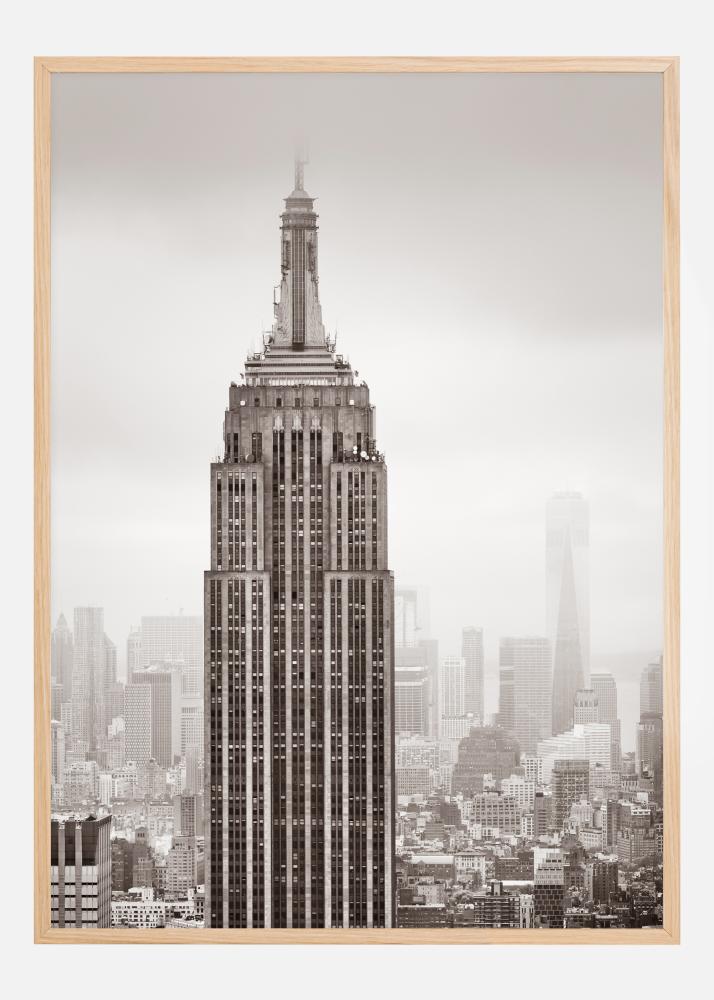 Urbaninis plakatas su Empire State Building pastatu Niujorke. Empire State Building yra pagrindinis akcentas, stovintis su Niujorku fone. Likusi miesto dalis yra iš dalies paslėpta rūke, todėl šios dangoraižio detalės ryškiai išsiskiria. Įsivaizduokite, kad tai yra jūsų vaizdas, kai pakabinsite šį plakatą savo namuose.