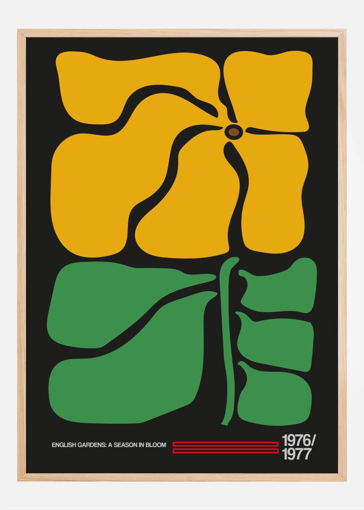 Šis plakatas yra stilingas ir konceptualus gamtos stebuklų vaizdas, o tekstas „1976/1977“ sukelia istorinio arba pasikartojančio įvykio, kaip metinis žydėjimas ar speciali paroda, jausmą. Dizainas yra minimalistinis, bet išraiškingas ir naudoja geometrines formas, kad beveik abstrakčiai perteiktų gėlę ir jos lapus. Tai idealus pasirinkimas visiems, kurie vertina meną, kuris užfiksuoja gamtos esmę, nevaizduodamas jos tiesiogine forma. Šis plakatas tikrai sukels diskusijas ir susižavėjimą kiekviename kambaryje, kur jis bus rodoma.