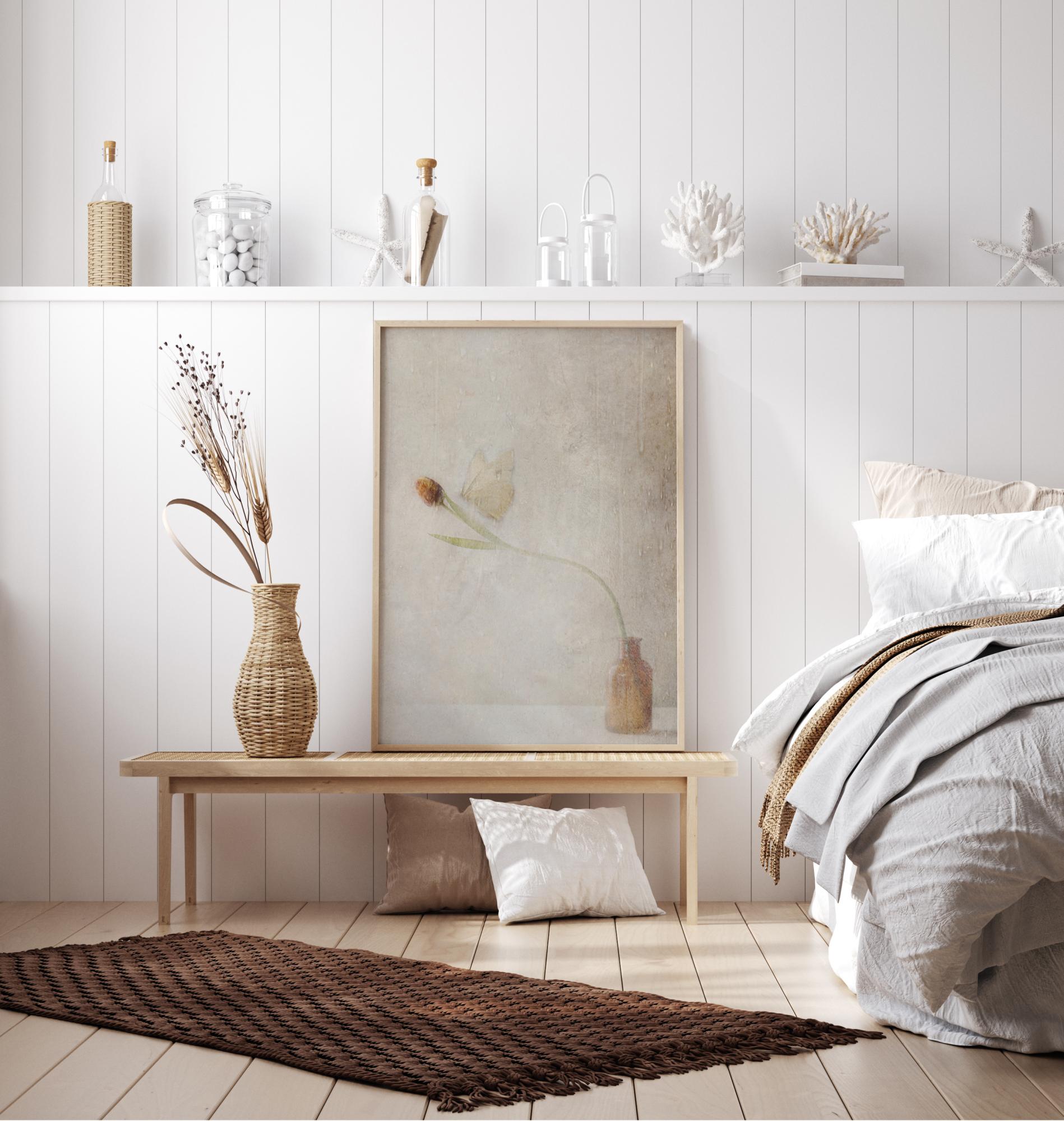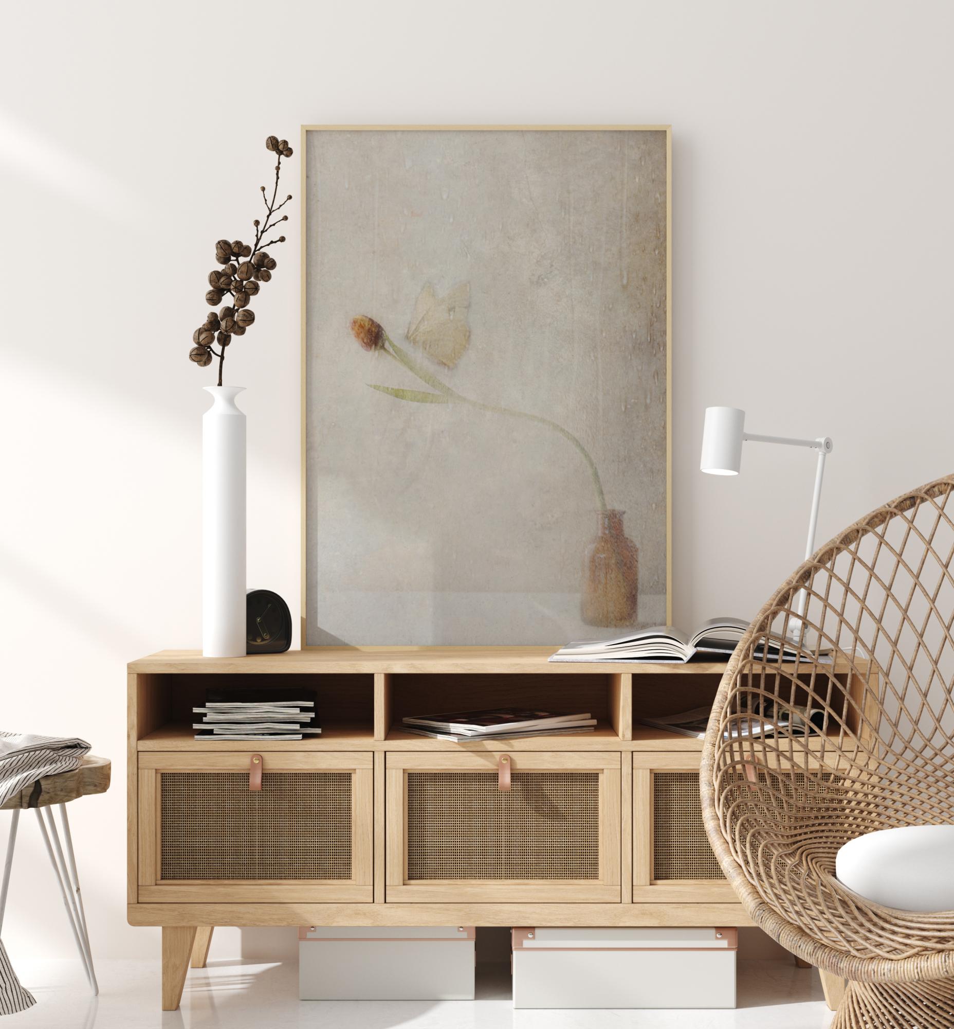 Nenuleidžianti afiša su drugeliu, nusileidžiančiu ant gėlės. Šis subtilus paveikslėlis su rudais tonu suteikia šilumą kambariui. Drugelis švelniai nusileidžia ant gėlės, kuri linksta link paveikslo vidurio. Sparnai beveik susilieja su siena už jo šio trumpalaikio susitikimo metu.