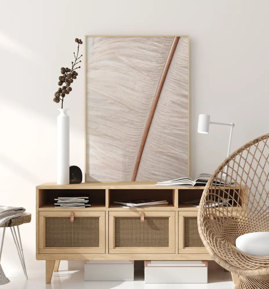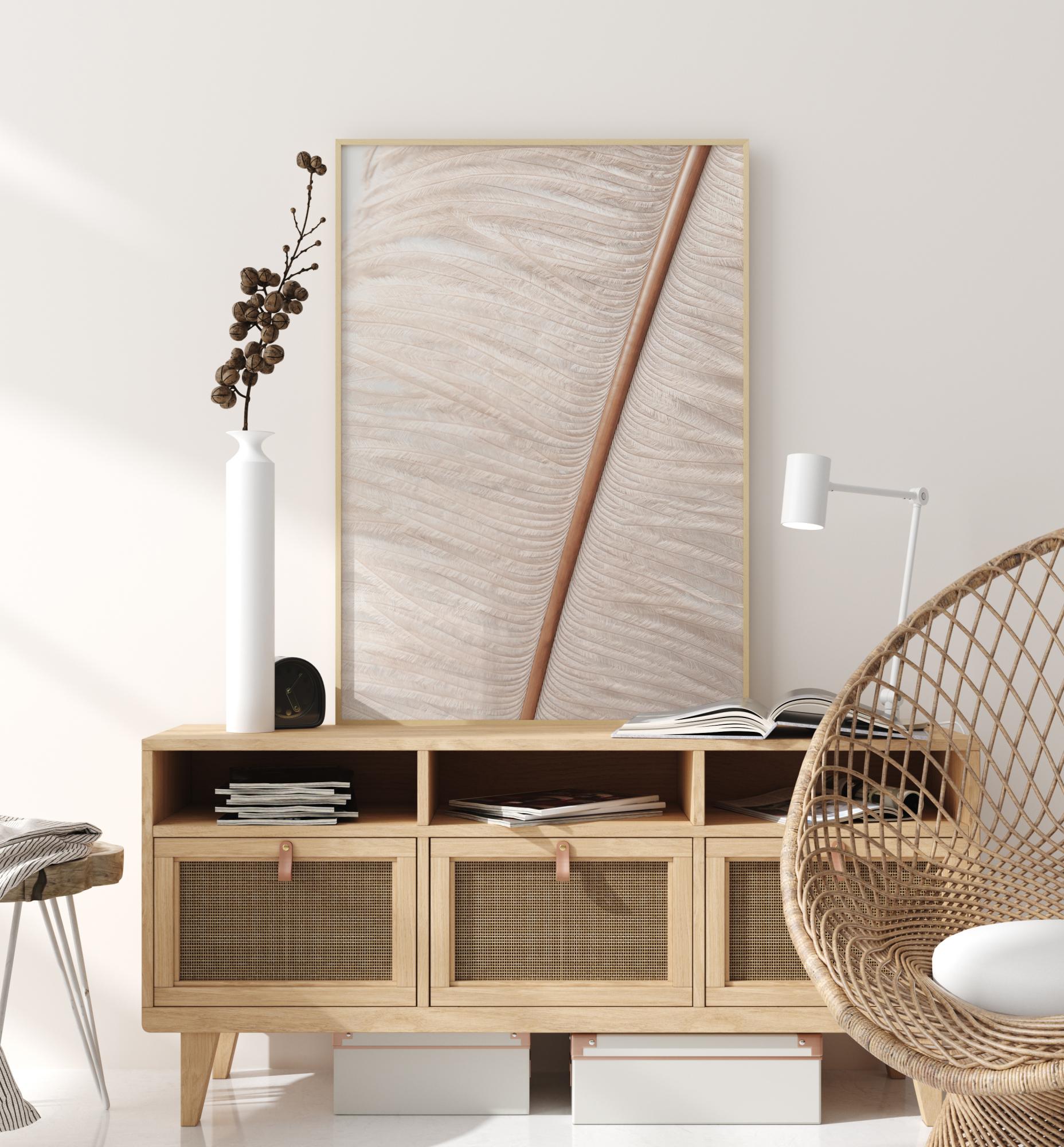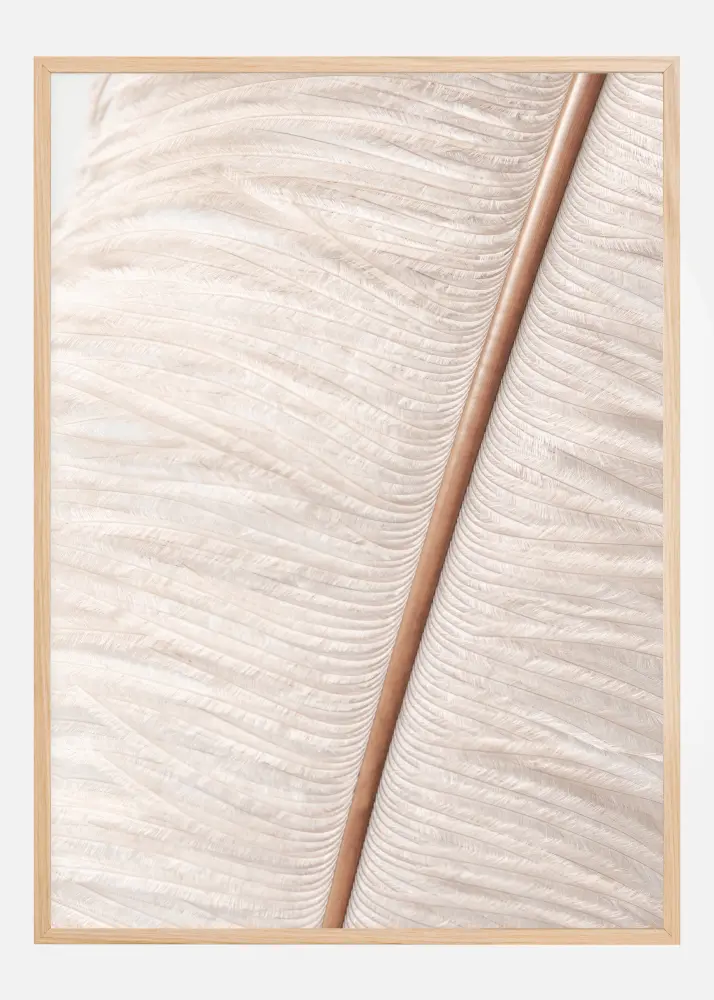 Makro plakatas su stručio plunksnos kotu. Ši priartinta nuotrauka parodo stiprų centrinį kotą su visomis mažomis puriomis baltomis šakomis, kurios išsišakoja. Detalės yra stulbinančios šio minkšto, bet kartu įspūdingo plakato. Derinkite prie neutralios sienos, kad sukurtumėte švelnų efektą.