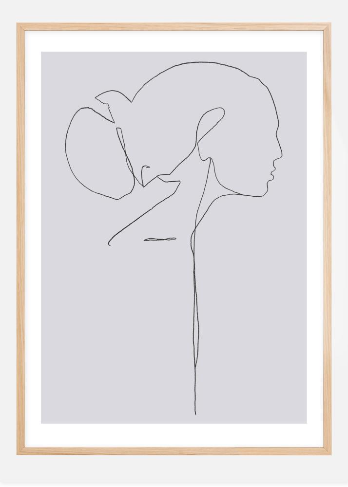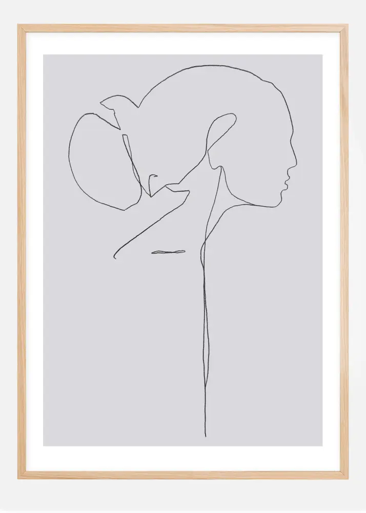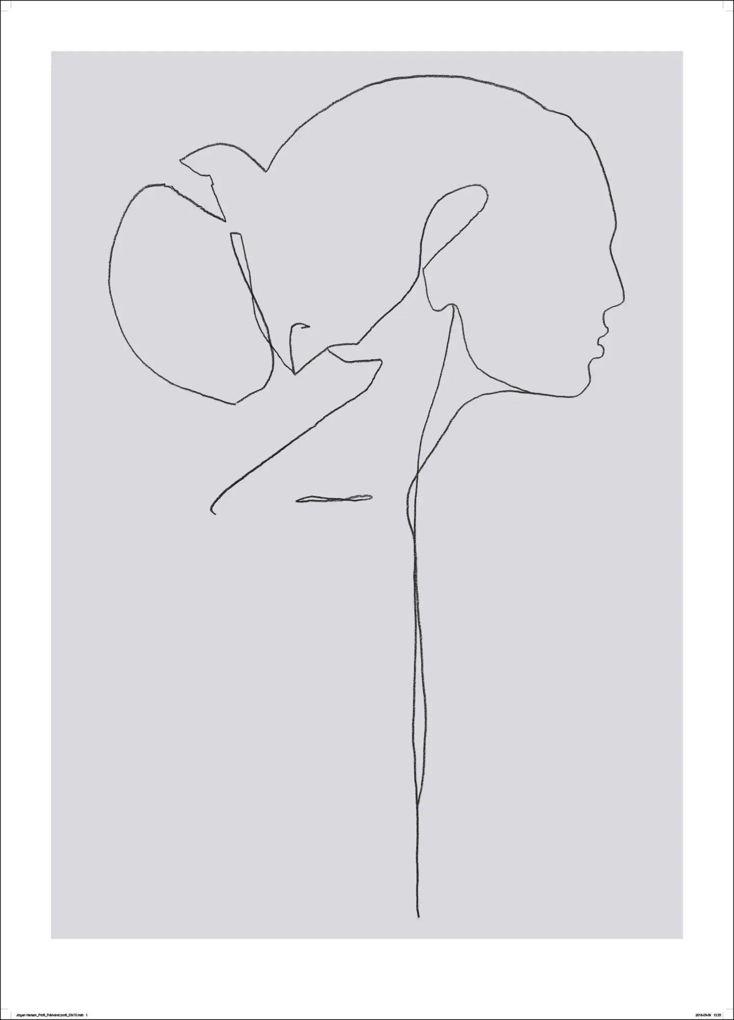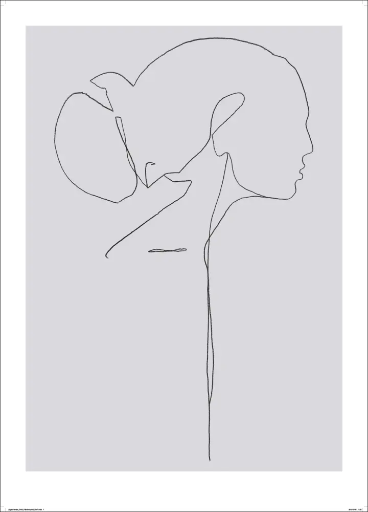 Gražus ir stilingas linijų menas moters su surištais plaukais profilio pavidalu, sukurtas Jörgen Hansson Art. Plakatas puikiai tinka derinti su kitomis Jörgeno Hanssono Female Lines kolekcijomis, kad sukurtumėte koliažą ta pačia tema.